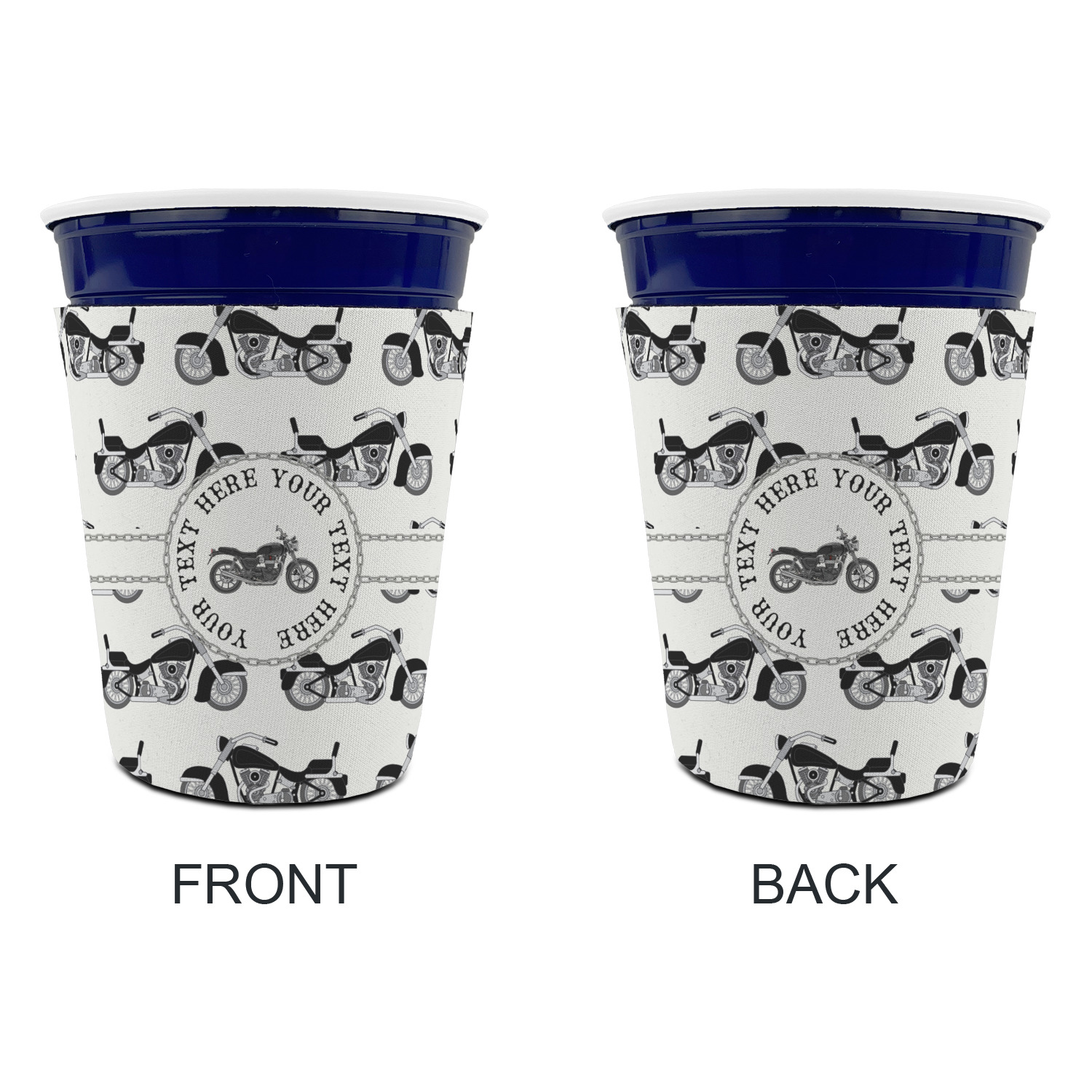 Made from neoprene with a polyester outer fabric and sewn seams, these premium quality party cup sleeves are very durable and will hold up to heavy use. They are available in 2 styles - with a bottom or just a sleeve to go around the outside of the tapered cup. The sleeve covers are about 4" tall and cover about 90% of the classic 16 oz. Solo cup.