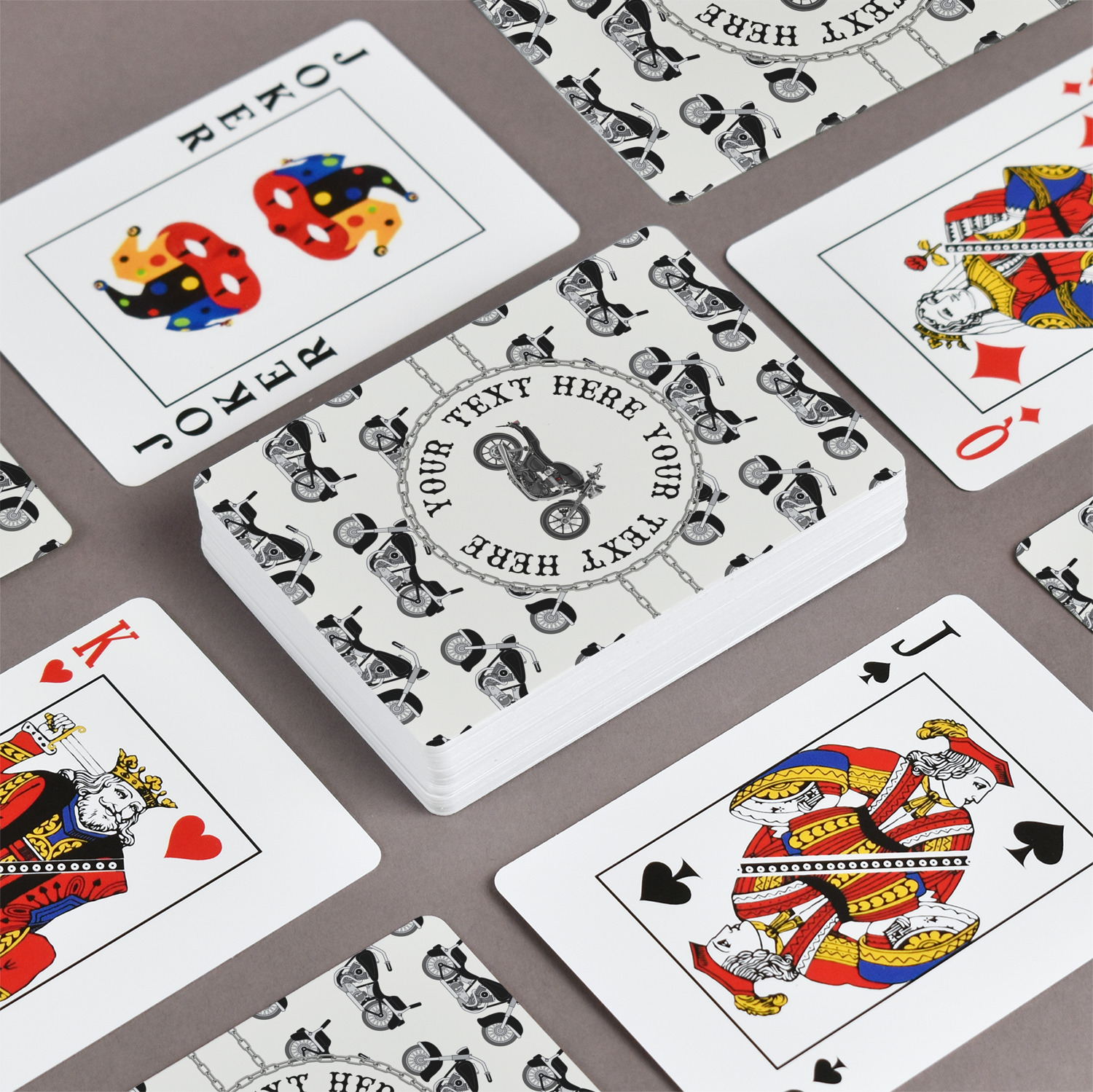 Our playing cards are perfect for family game nights or poker nights. A deck of customized playing cards ups the level of fun & entertainment to your game or poker nights. Imagine playing cards customized to match the theme of your game room, or game night, or that special event, or occasion with gambling tables!