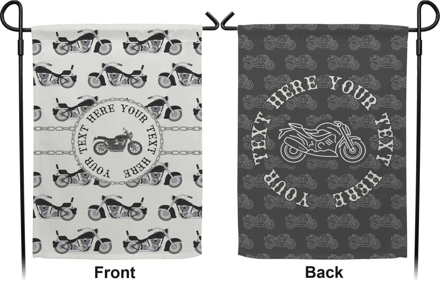 These custom garden flags are made of a durable, double-ply, polyester weave, allowing them to withstand the elements year round. The small flags measure at approximately 12 by 18 inches. The large flags measure out to 28 by 37 inches. You can order these decorative flags with your customization printed on the front only, or the front and back.