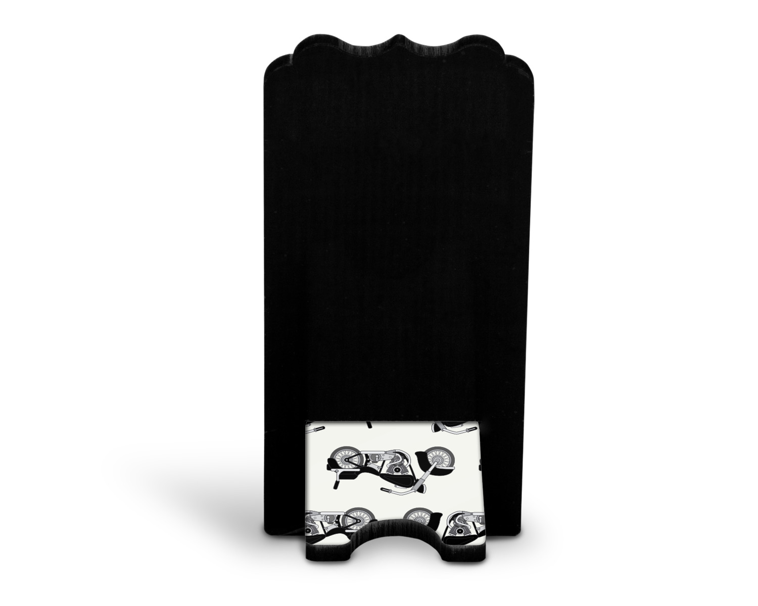 These cell phone holders are comprised of two hardboard pieces, that lock into and steady one another. The bottom part of the mobile phone stand is spacious enough to support both your phone and your charger, while it is not in use. We print your customization atop the face of this stand, while the remaining sides are a sophisticated, black color.