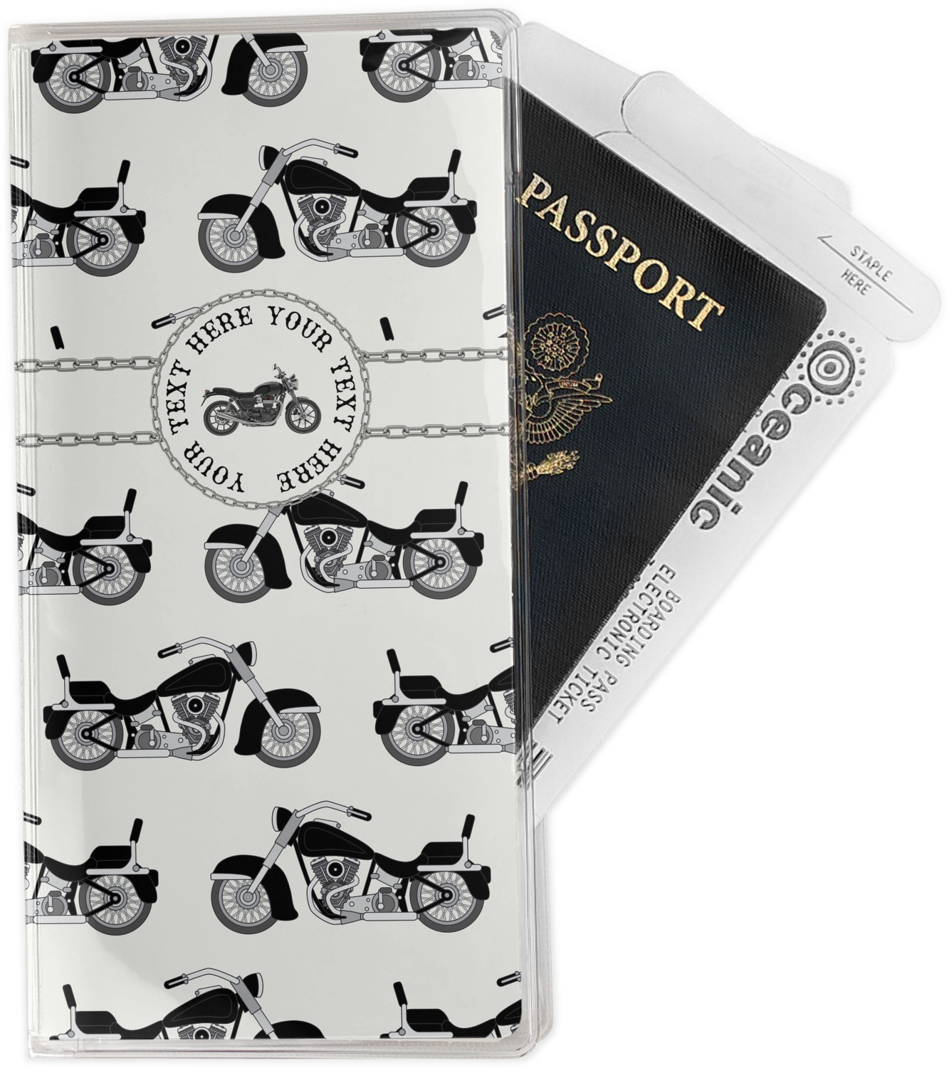This document holder is really sturdy and has your personalized design inserted right behind all of your nifty pockets, so you can see it on the front and back covers. There are two large pockets and two shorter pockets inside. The larger pockets are tall enough to keep your boarding pass nice and straight. The smaller pockets (on top of the large pockets) are large enough to fit your passport, credit card, or ID.