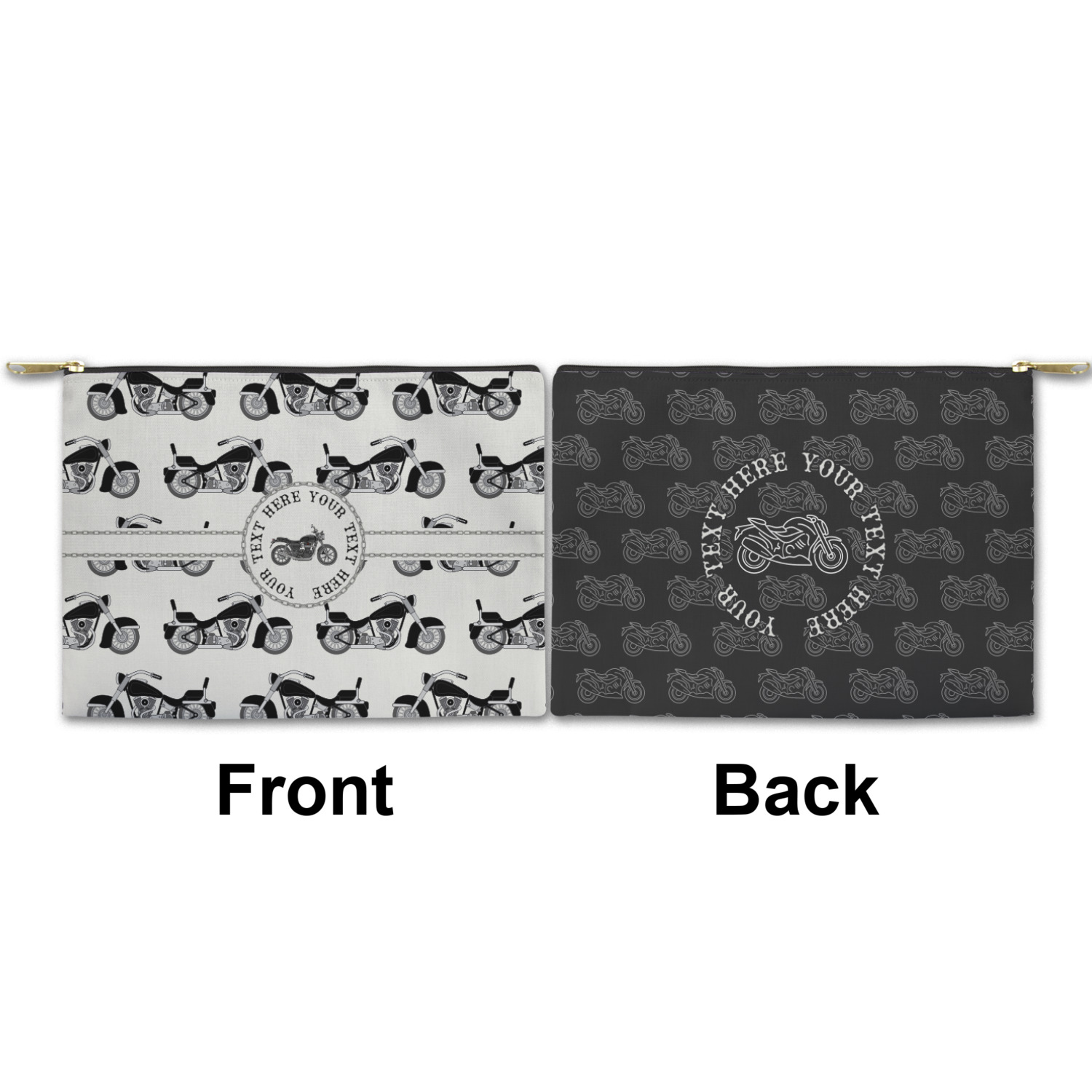 You can design both the front and the back of the pouch - same design, two complementary designs or two totally different designs - the choice is yours! We offer many different personalization styles i.e. name, name & initial, monograms - so the choice to personalize is also yours.