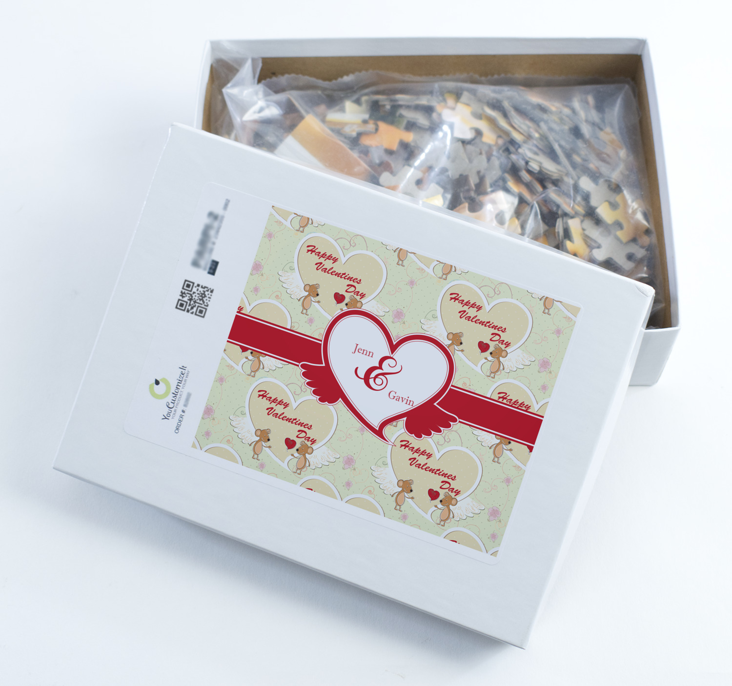 We print our puzzles on thick white chipboard in vibrant colors, then laminate the chipboard and die cut your puzzle. Your jigsaw puzzle is shipped to you in a box with the image of the puzzle on the box.