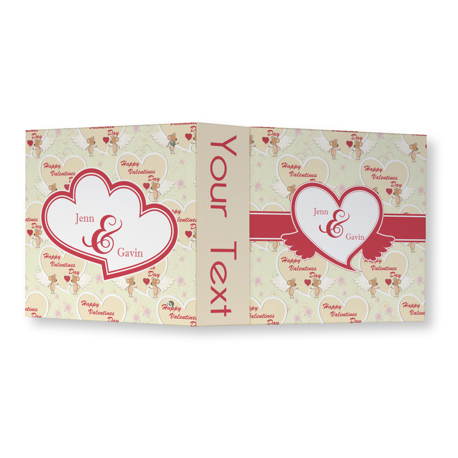 Made from a sturdy cardboard base with a full high quality canvas textured vinyl wrap with the design of your choice. Unlike our standard 3-ring binder with the full wrap design your artwork wraps from the front and back and into the inside of the binder.