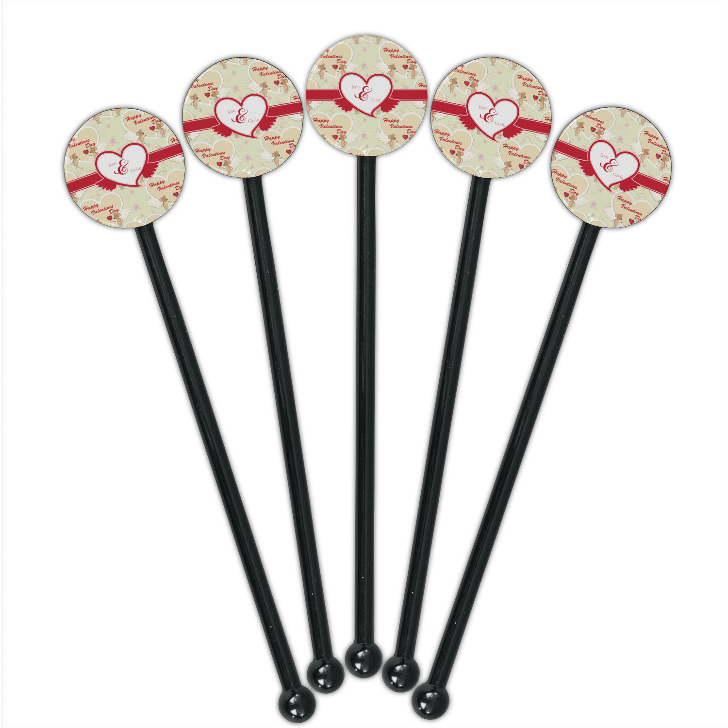 Shape + Symbol Designs for 5.5" Round Plastic Stir Sticks - Black - Single-Sided