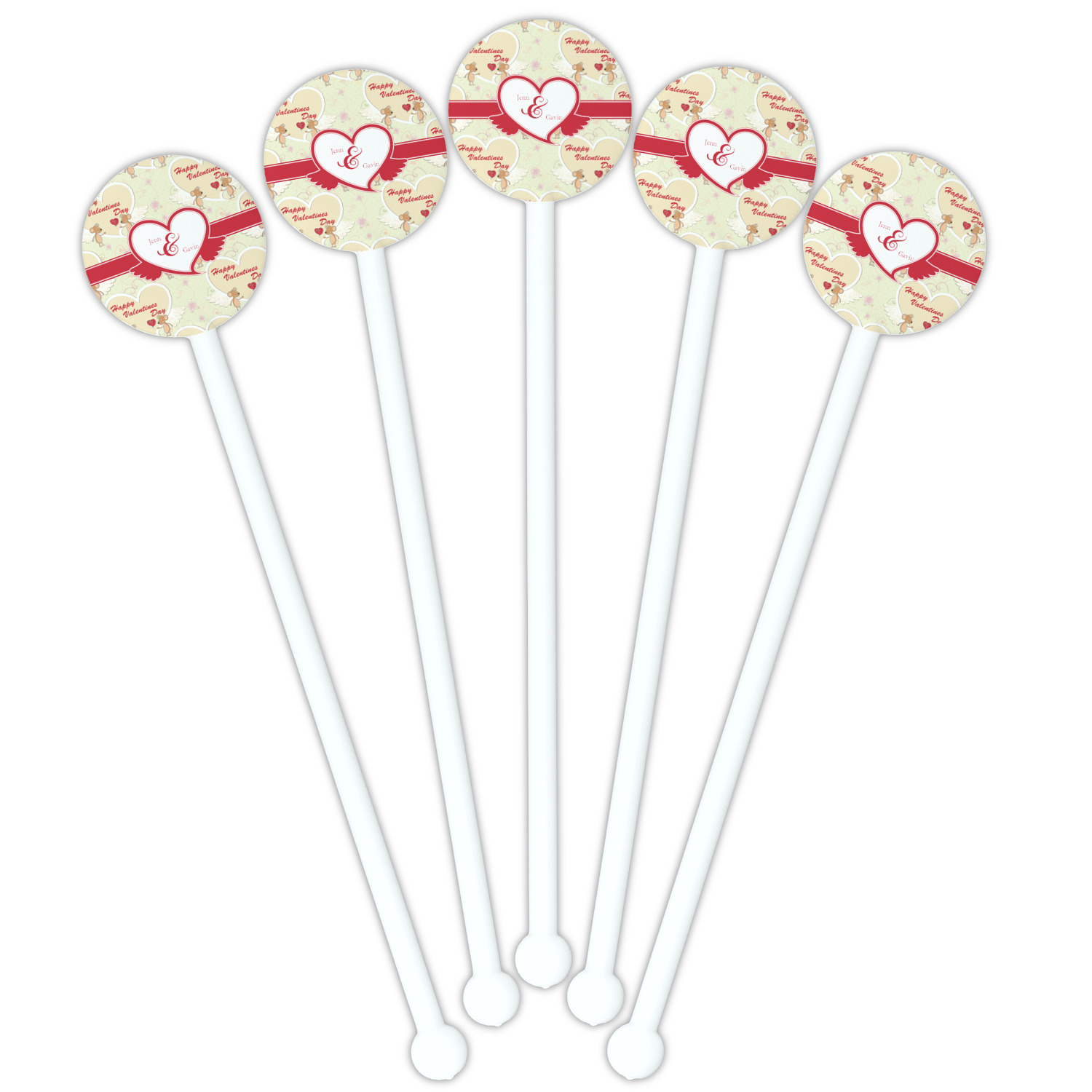 Shape + Symbol Designs for 5.5" Round Plastic Stir Sticks - White - Double-Sided