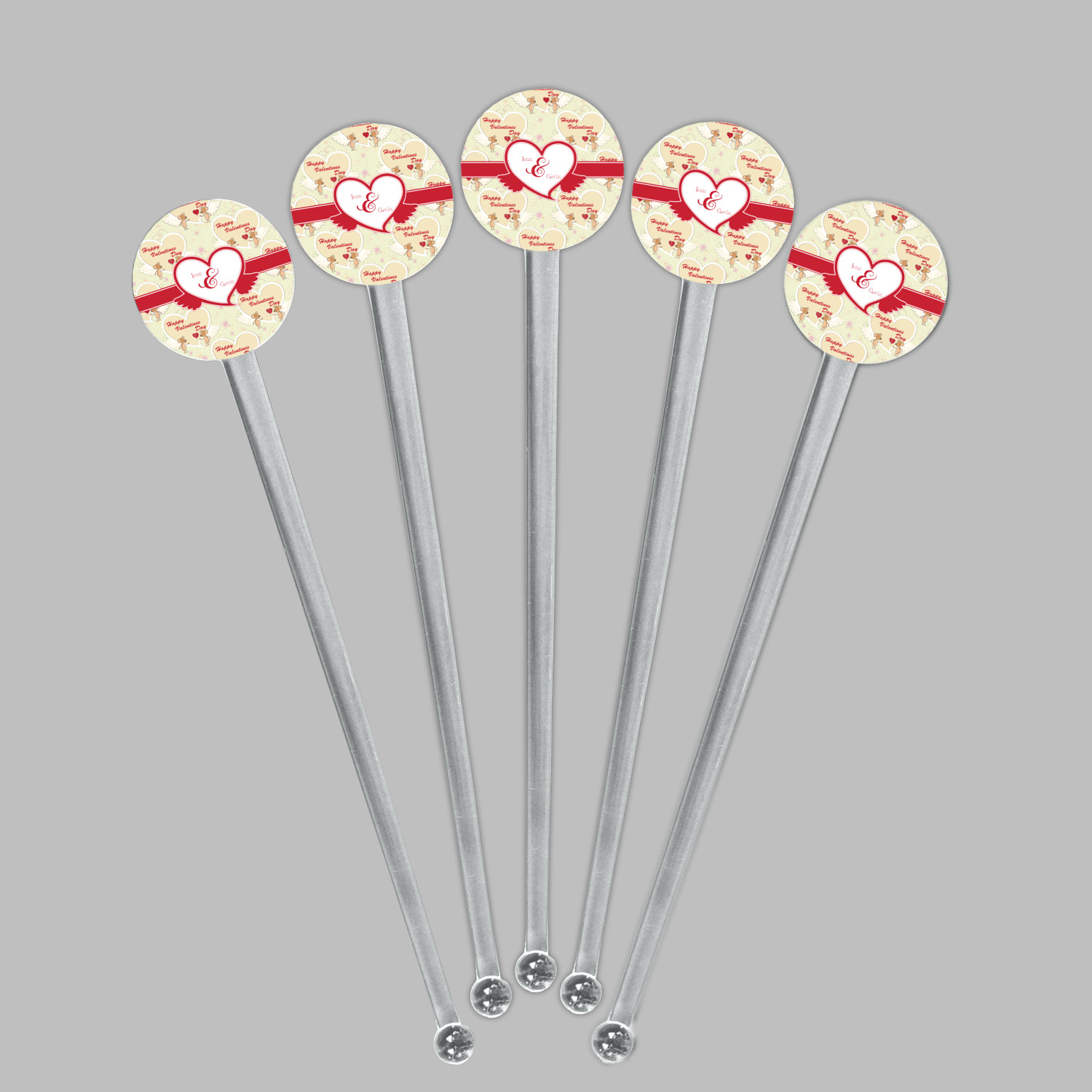 Shape + Symbol Designs for 7" Round Plastic Stir Sticks - Clear