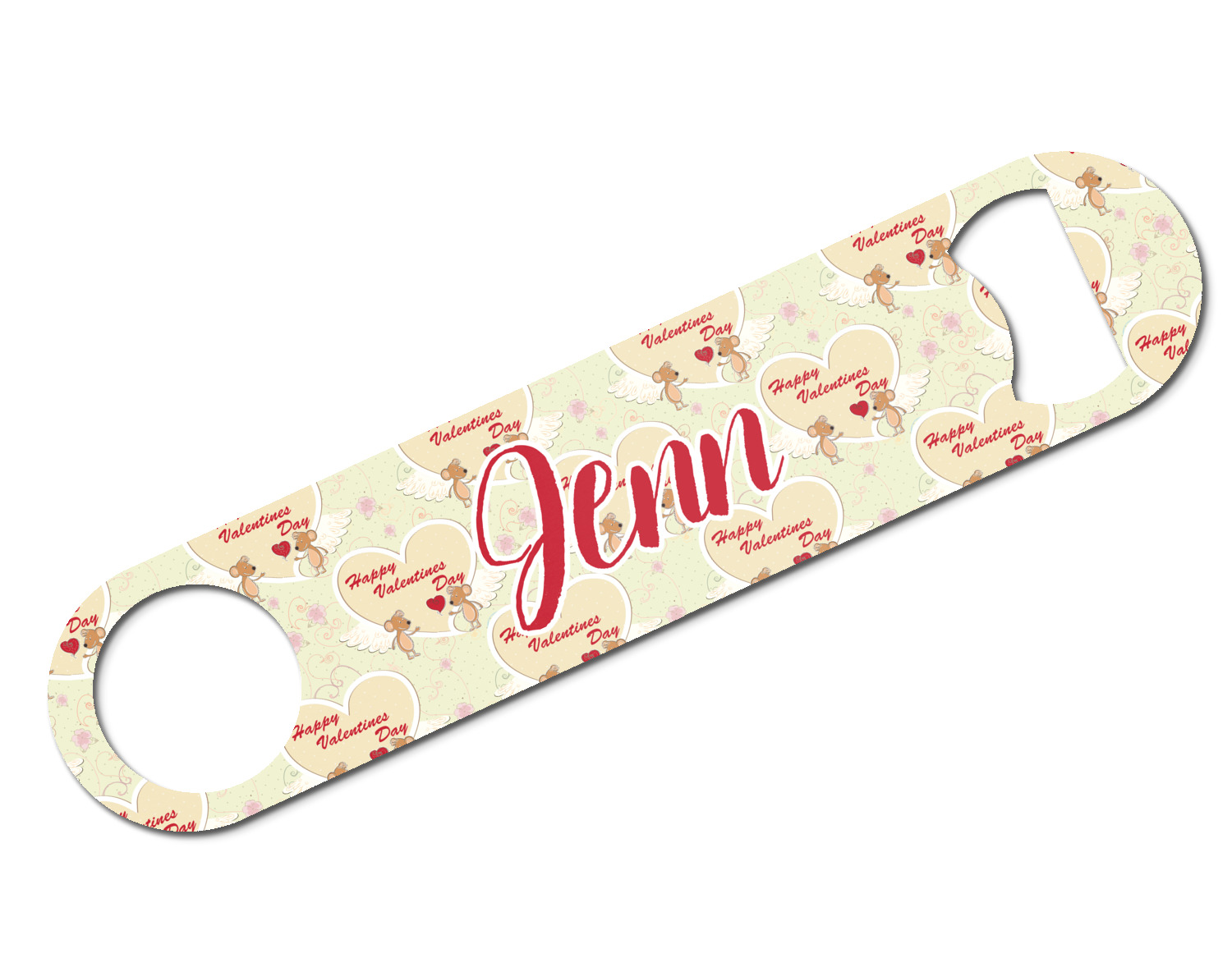 Made from stainless steel, these beer bottle openers are 7 by 1.625 inches, giving you plenty of leverage when trying to open a stubborn bottle. On one end of this personalized bottle opener, you'll find a circular hole for you to hang and display your opener. On the opposite end, you'll find the tool used for opening bottles. This opener in particular has the same structure and style as professional bartender bottle openers. Your customization is sublimated onto both the back and front, and both sides can be customized individually. Choose from one of our two base colors - white or silver.