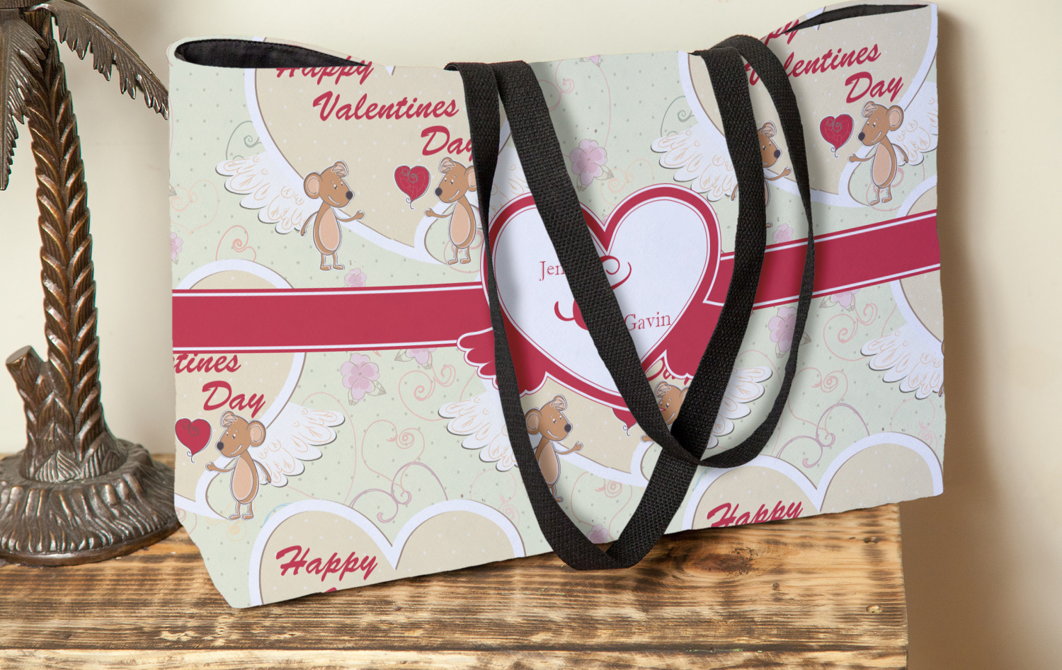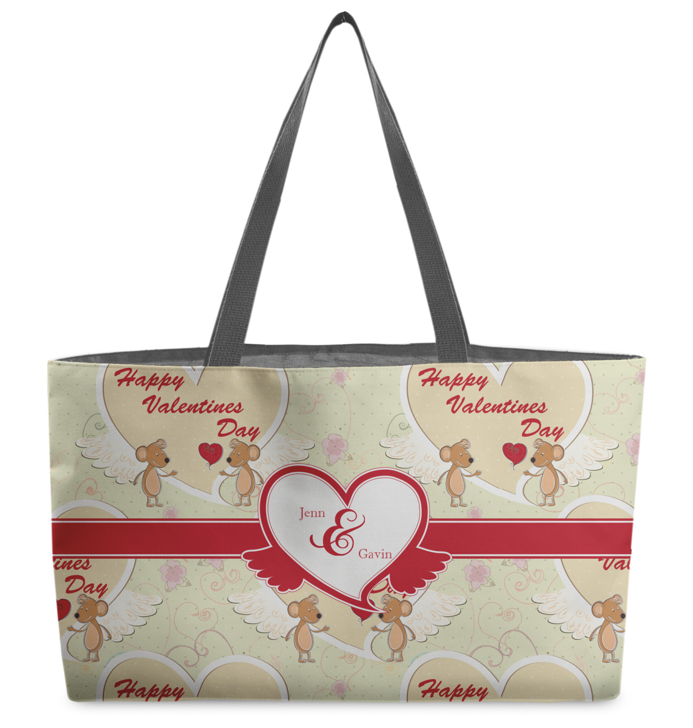 You can design the totes with a design on the front and another one on the back. The two designs can be identical or completely different. The choice is yours.