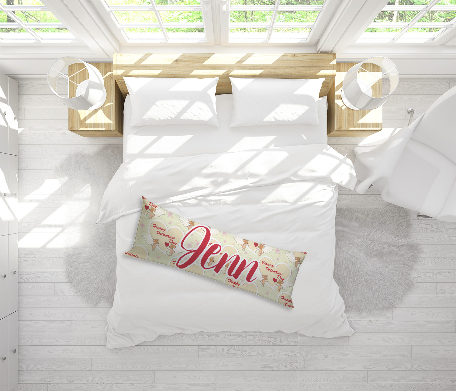 An opening on the side of the custom body pillow case allows for the insertion and removal of a pillow. This custom body pillow case measures at 54" x 20" and displays your design on its topside.