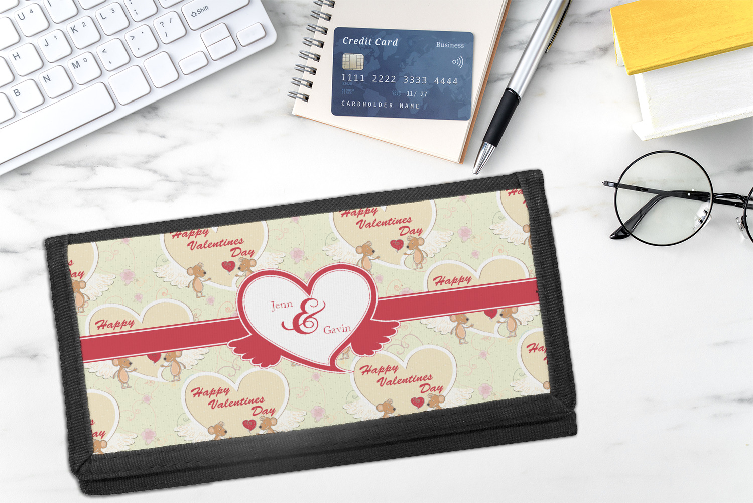 The checkbook cover is made of a durable canvas and the front flap is decorated with a vibrant design of your choosing. With 4 slots for credit cards or IDs, and 2 compartments for your checkbook register, cash, receipts, business cards, and more; this checkbook cover could easily double as a wallet.