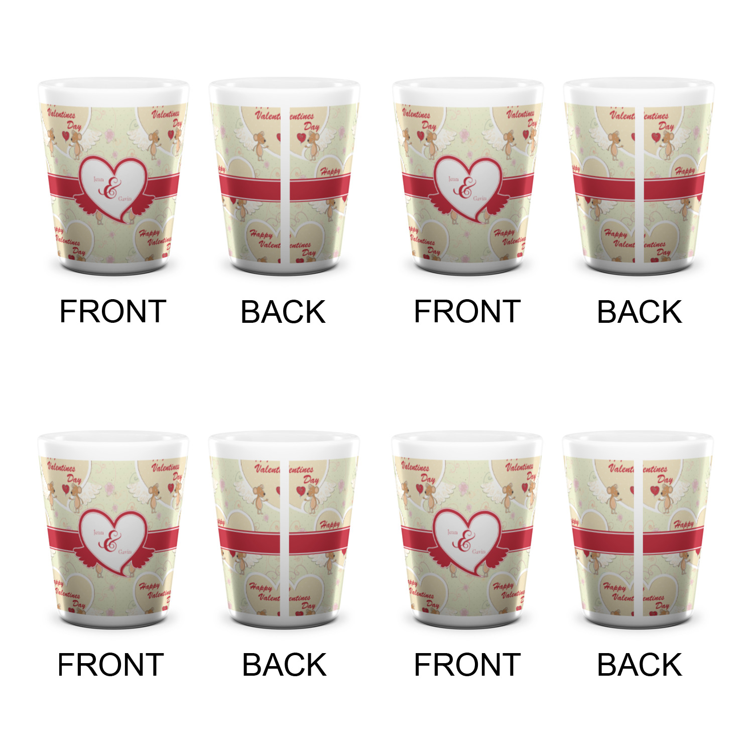 Made from ceramic these shot glasses are printed in full color with the design of your choice. These are a standard 1.5oz size and stand 2.25" tall. Available in a full white ceramic or a two-tone with a black color inside the shot glass. Buy a single or a set of 4, all of which can be designed separately to get you just what you want and need.