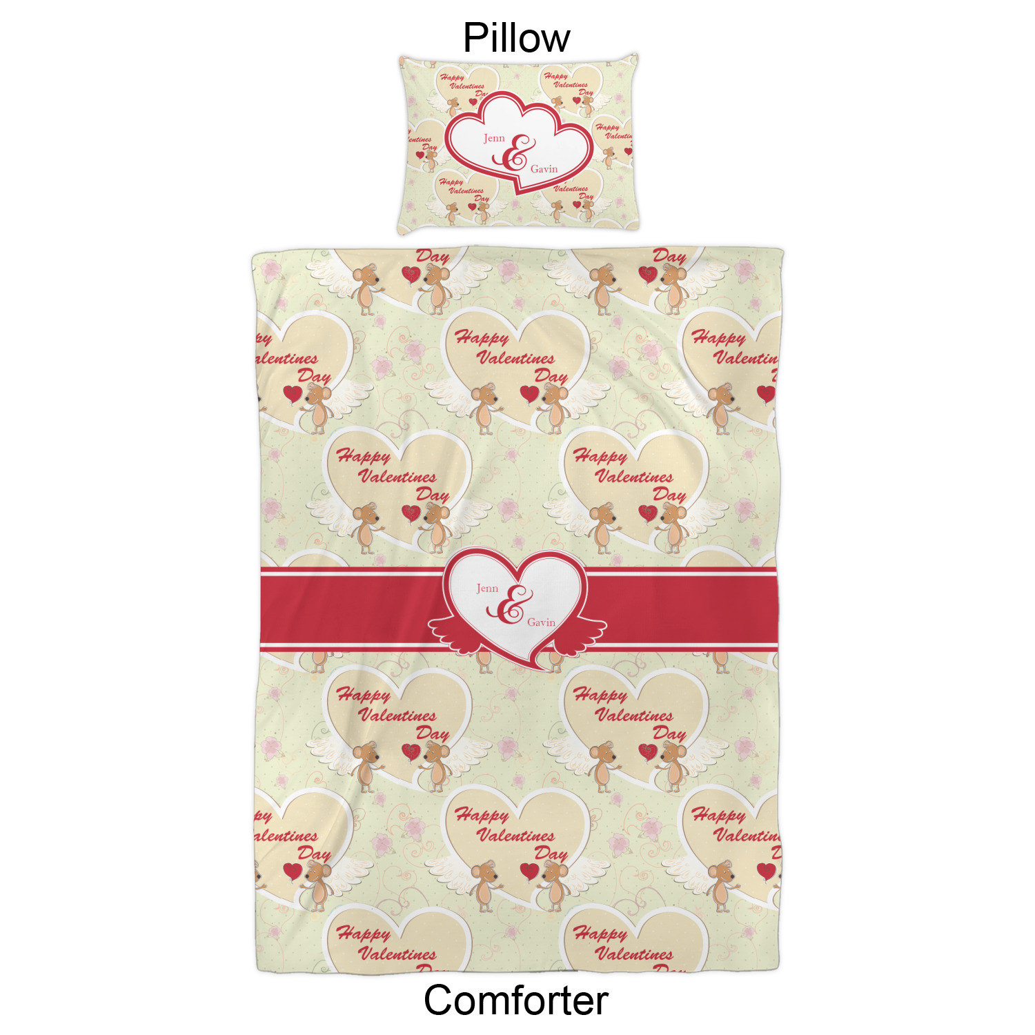 We have hundreds of different design templates for you to choose from Each design can be customized to your exact specifications. Not only can you customize the comforter, but you can also customize each pillow sham e.g. for a queen comforter set you have have Mr & Mrs pillow shams with the last name on comforter.