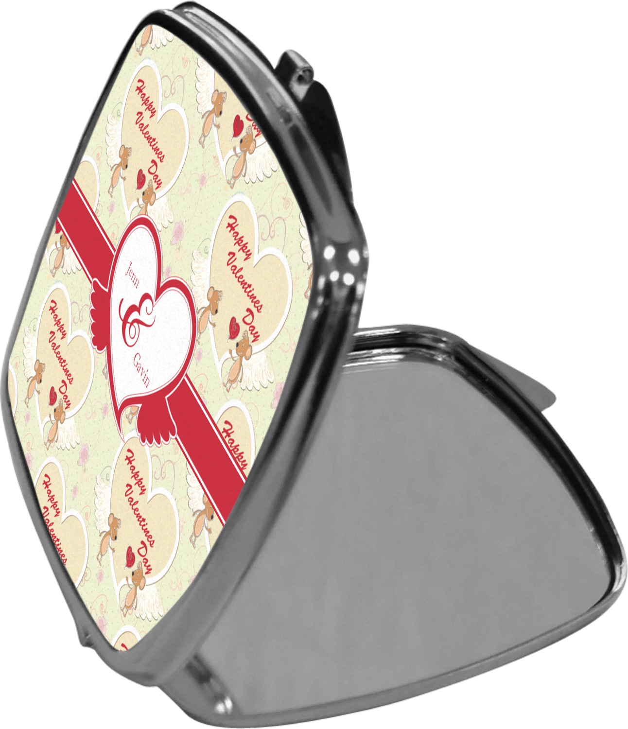 We offer many prints and patterns and many of our patterns are available in 45 different colors. You can personalized the compact mirrors with a name, a monogram or just an initial. We offer several different label, ribbon and font choices. Our customization system lets you create your very own custom & unique product and it lets you preview it before you purchase.