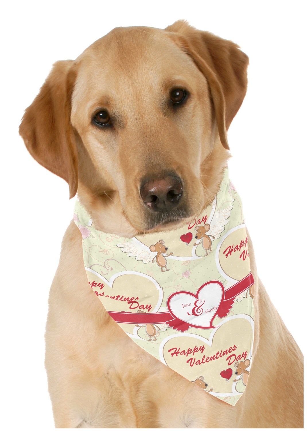 This beautiful pet bandana really is the perfect accessory. It is made from a silky feeling polyester and measures at approximately 23" x 23". Your personalization will be printed on a diagonal, so that you are able to read the personalization when folded into a triangle. This bandana fits best on large dogs, but can be folded smaller if there is no personalized text to fit smaller pets.