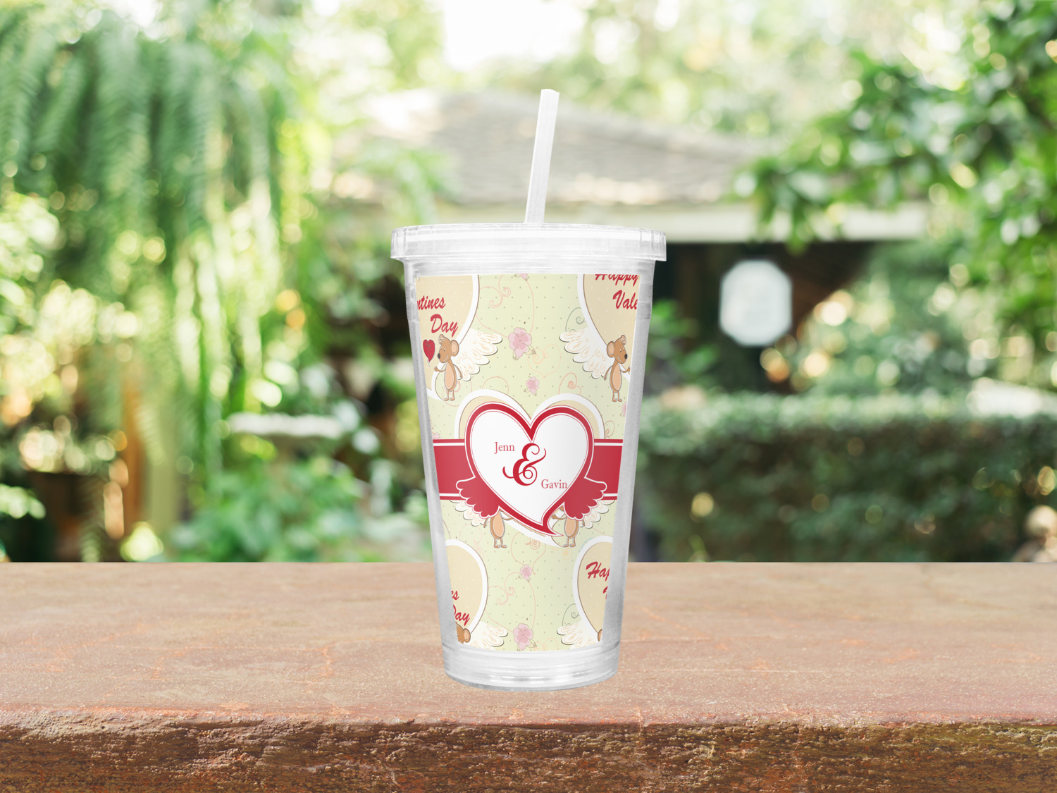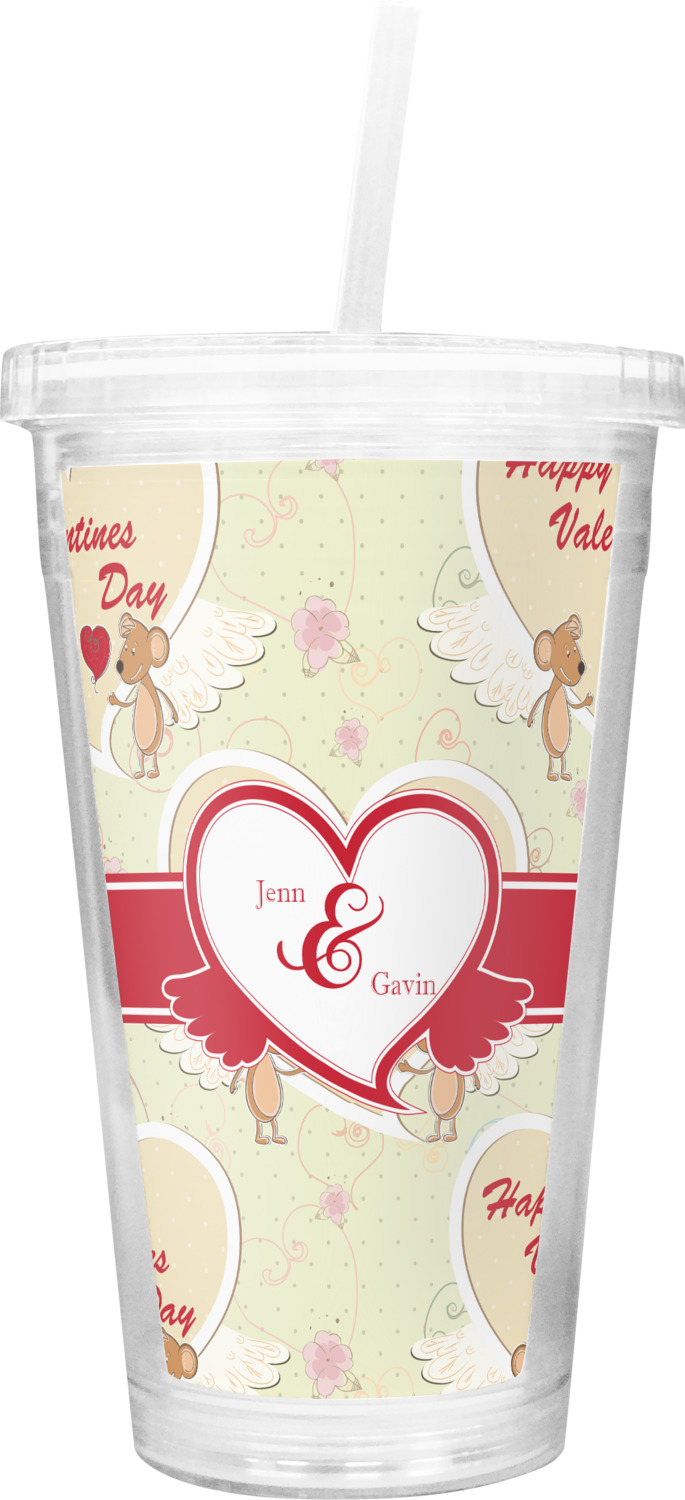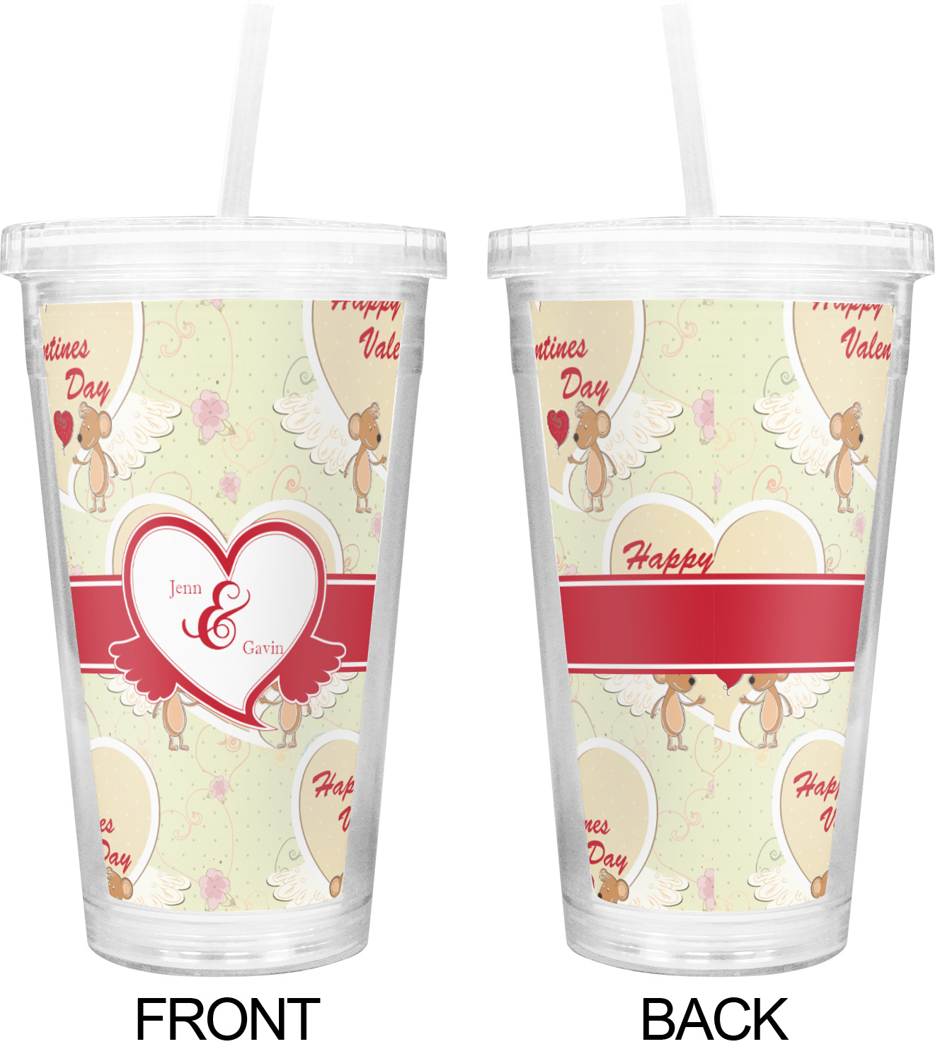 These tumblers are customized for you with a printed insert between the two walls of the cup. The lid screws on tight and helps to keep your drink cold.