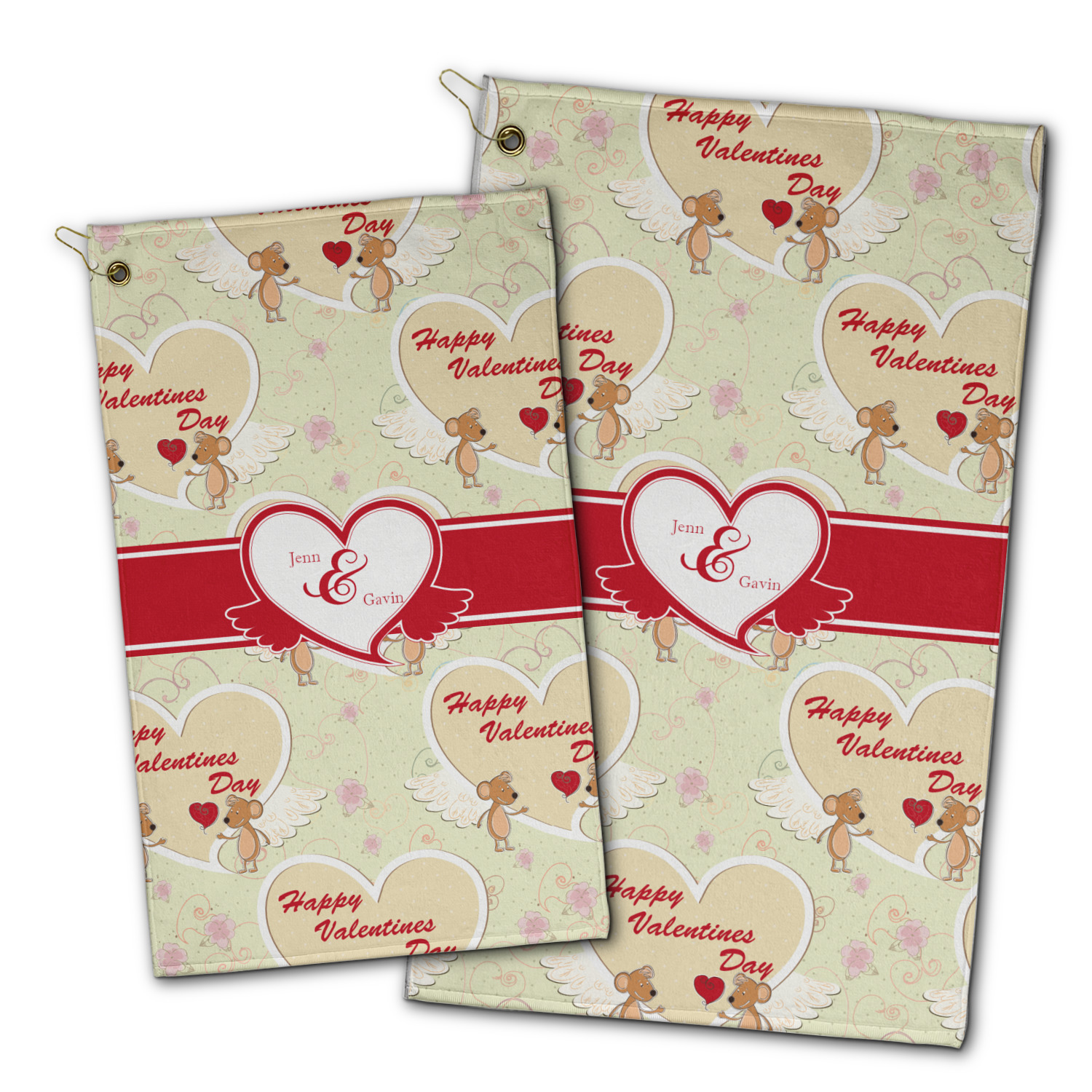These golf towels are come in 2 sizes: Small: 11"x 18" and Large: 15" x 25" in dimension.