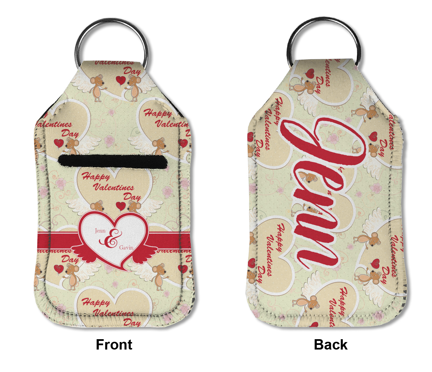 Each hand sanitizer holder comes with its own empty travel-sized, refillable hand sanitizer sure to fit snug in your customized sanitizer case! Our hand sanitizer cases are a durable, yet soft neoprene material sure to last any daily activities or travel agenda. Customize and personalize a hand sanitizer bottle holder with one of our two sizes - small (4.25" x 2.25") or large (5.5" x 2.5"). Each travel sanitizer holder comes with a keyring for attachment on bags, keys, or more!