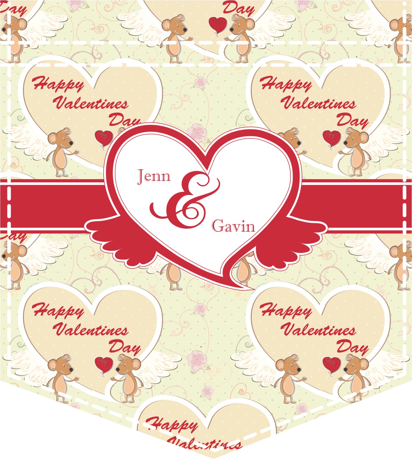 Our no sew faux pockets are easily customized by you. Our customization system allows you to change the personalization from a name to a monogram or to a name & initial or remove it completely. You can also change the colors, fonts, graphics, backgrounds etc. You can also upload your own picture / image or logo or we can custom create one for you or your event.