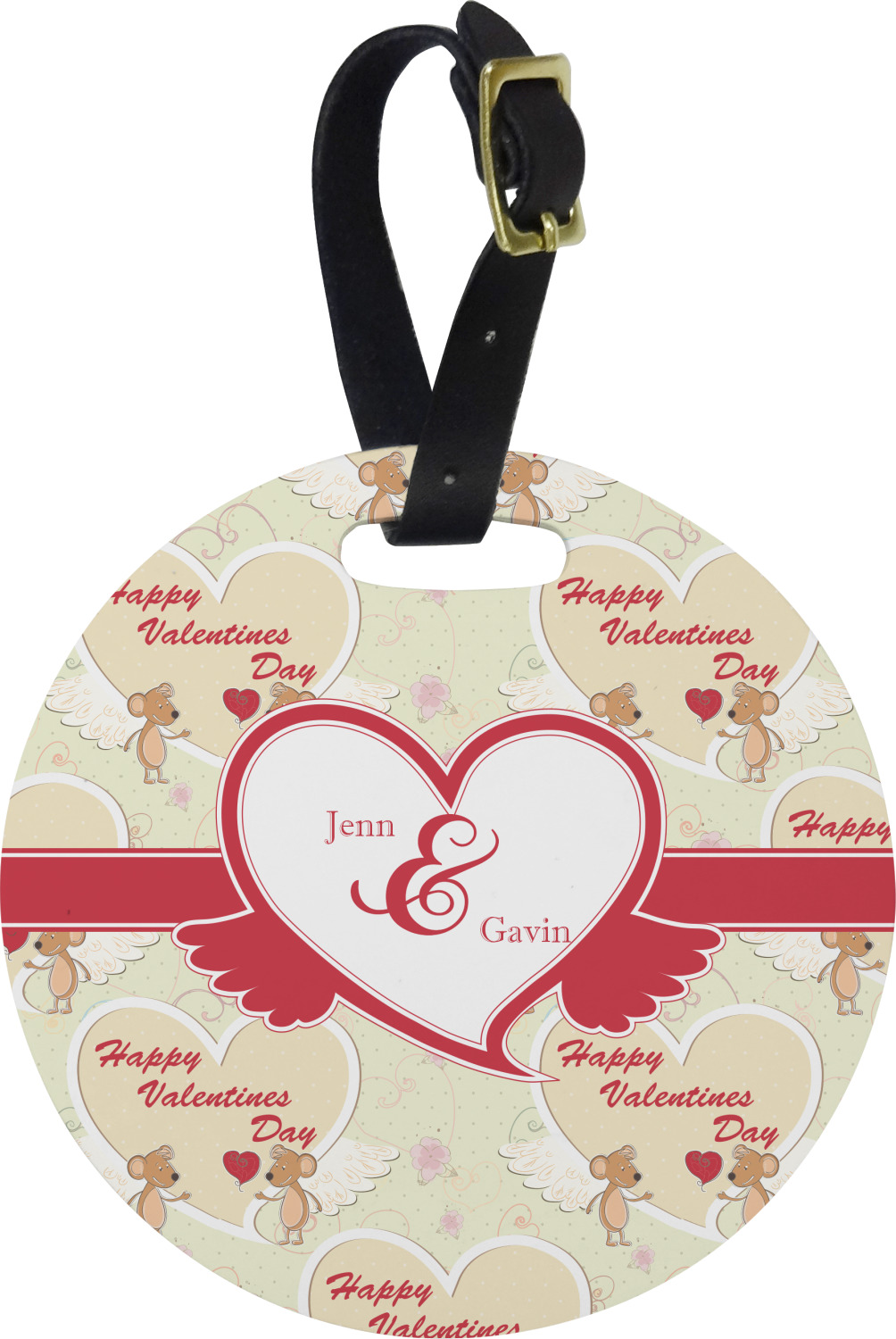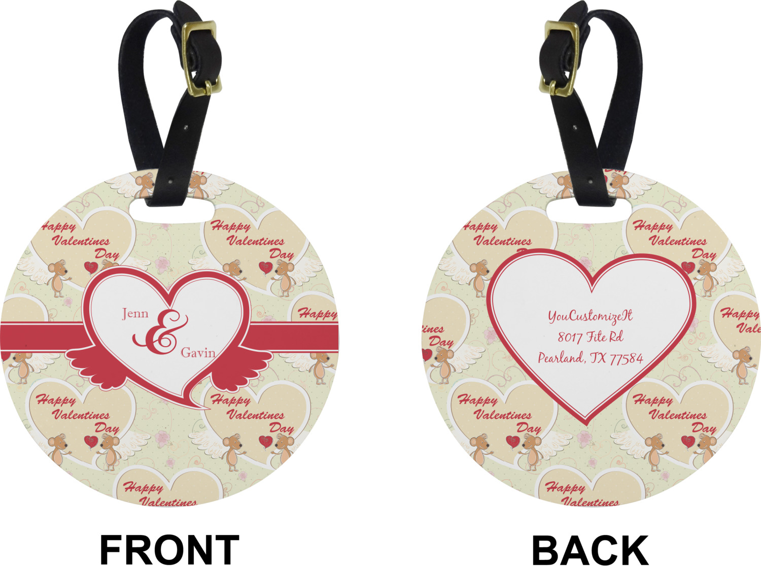 These personalized bag tags are sold in a variety of shapes, so that you may find the product that meets your vision exactly. We sell a round luggage tag, which measures at approximately 4" x 4". Our square luggage tag is about 3.5" x 3.5", while our rectangular version is 2.75" x 4 ".
