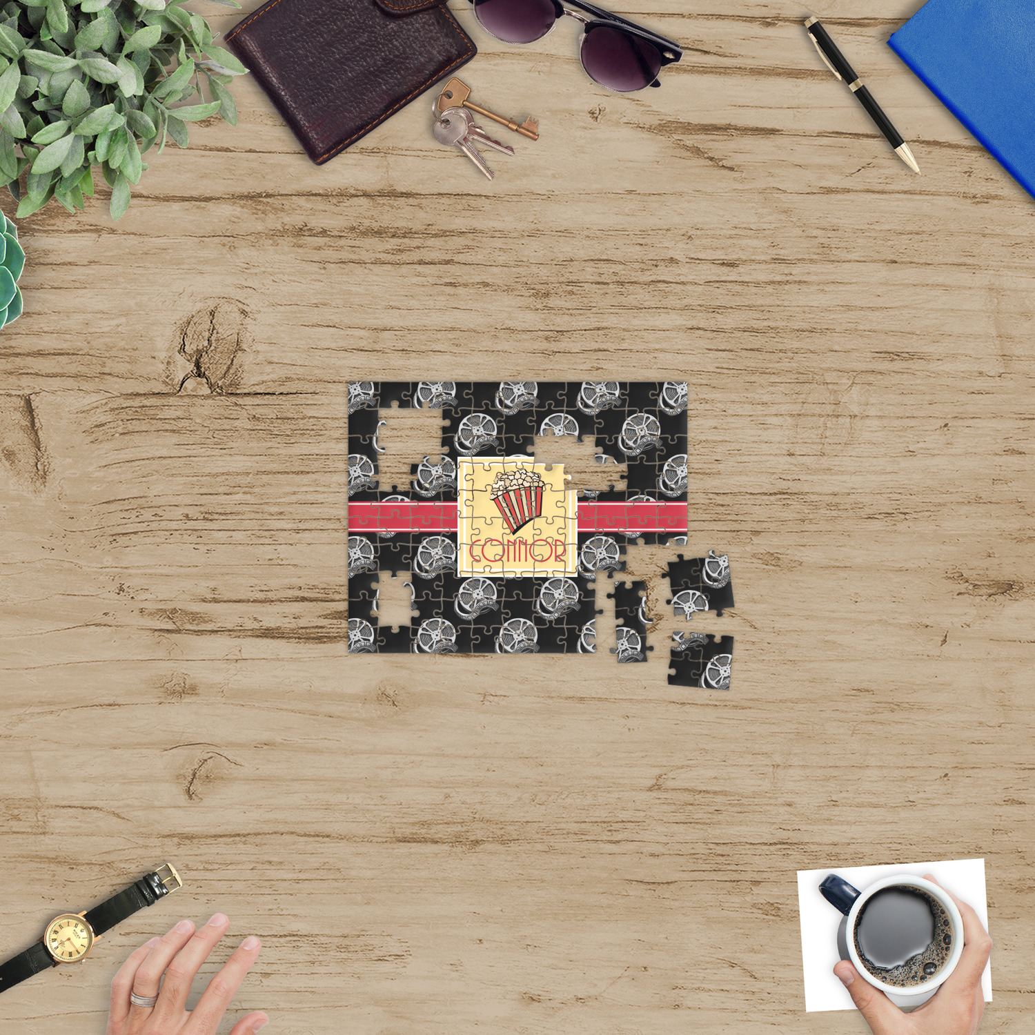 Depending on the look you are trying to achieve, you can add; a thematic pattern or background, with a photo in a frame and text or personalization to your puzzle. Basically if you can imagine it, you can design it!