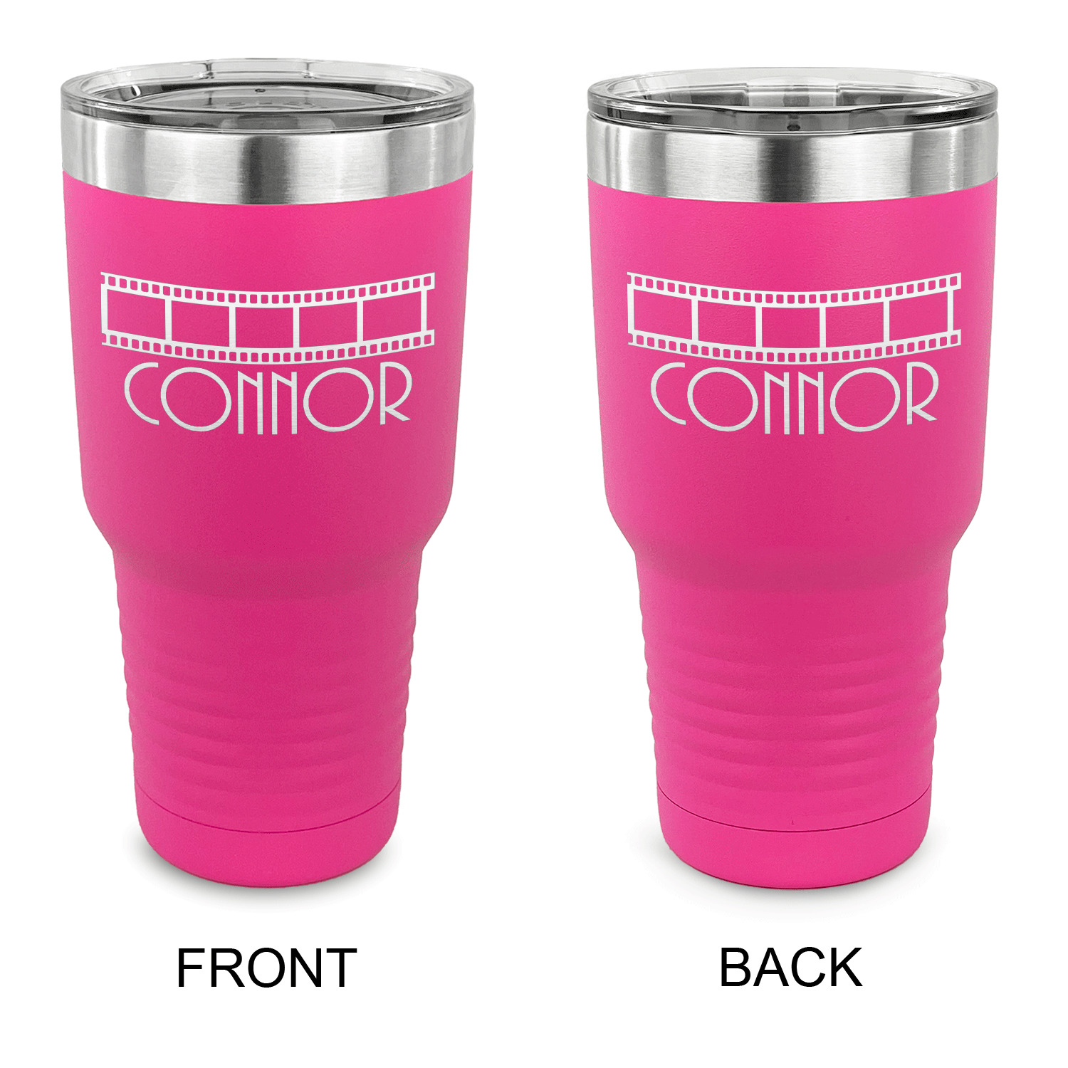 With the 5 colors - Black, Navy, Red, Pink and Coral, you are sure to find a cup to fit your personality. You can chose to engrave on the front or the front and back of the cup. Use our design studio to design your own cup and we laser engrave it for you.