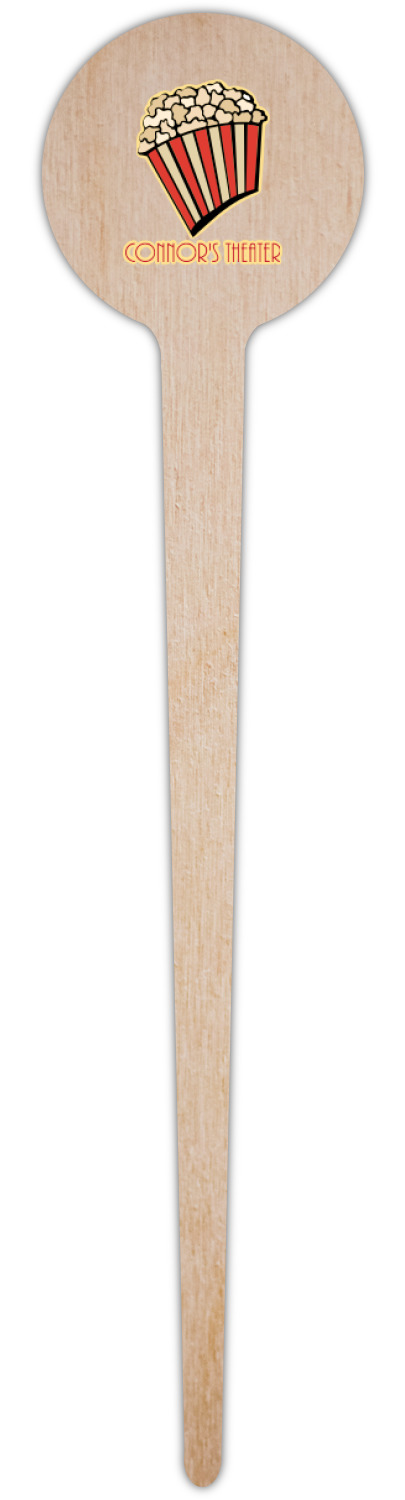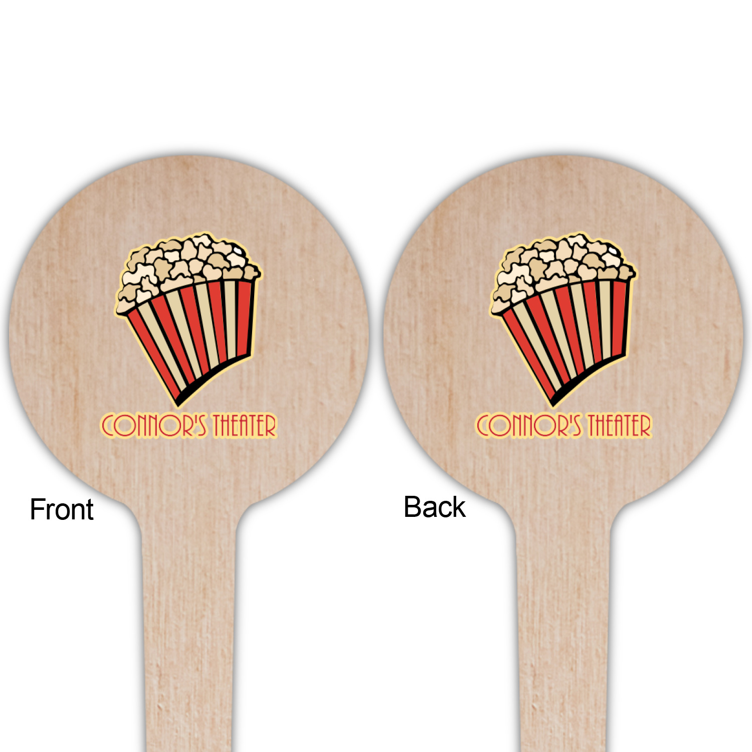 This fun design features a black background with movie reels repeating. On top there is a bright red ribbon with a soft yellow frame. In the frame there is a fun popcorn graphic with your personalization underneath. The yellow and red give the perfect contrast against the dark black. The font even gives you a classic movie feel.