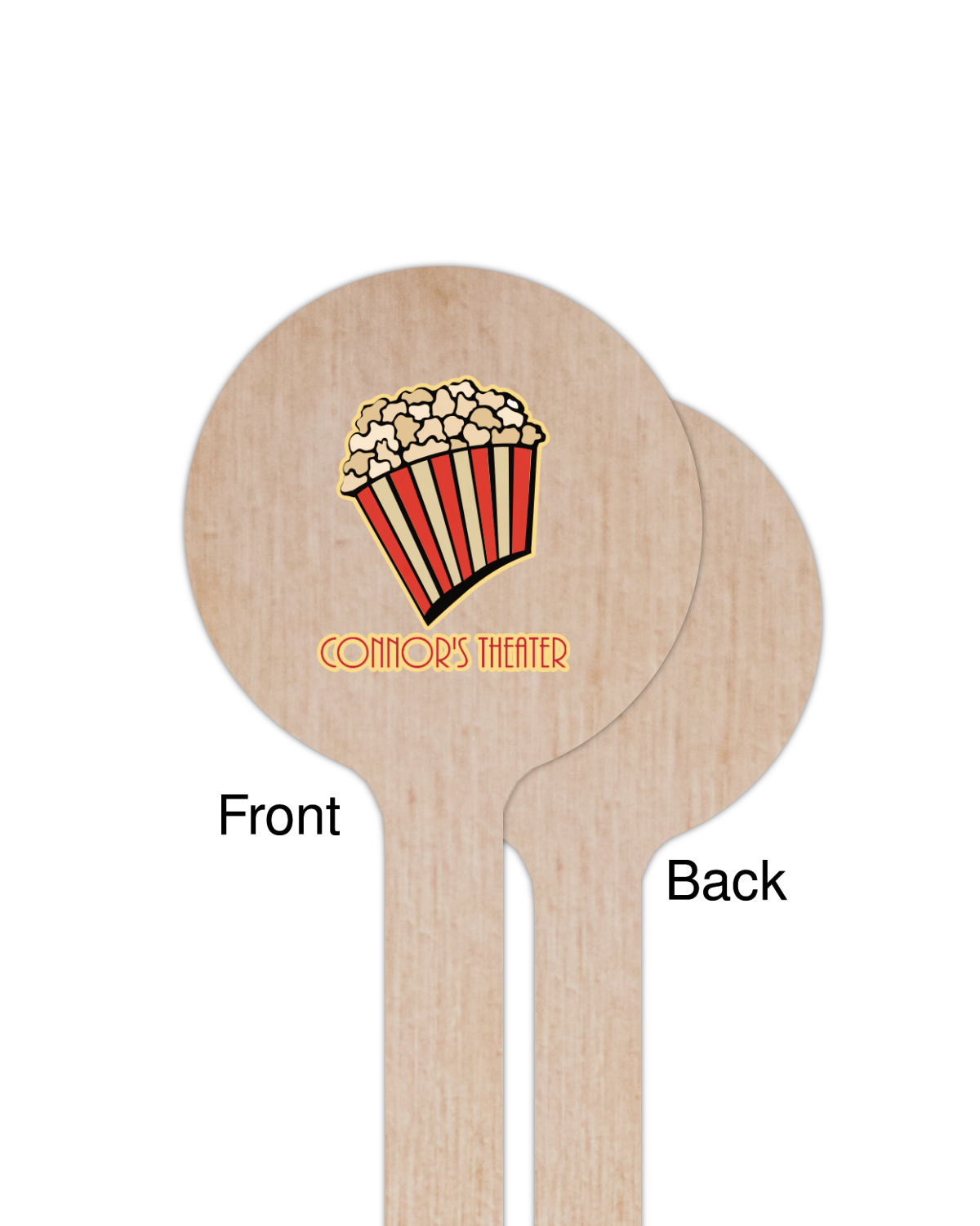 This fun design features a black background with movie reels repeating. On top there is a bright red ribbon with a soft yellow frame. In the frame there is a fun popcorn graphic with your personalization underneath. The yellow and red give the perfect contrast against the dark black. The font even gives you a classic movie feel.