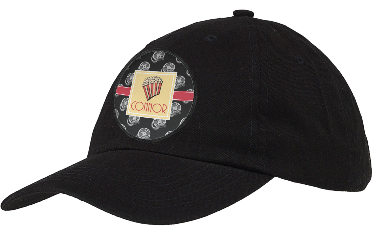 This fun design features a black background with movie reels repeating. On top there is a bright red ribbon with a soft yellow frame. In the frame there is a fun popcorn graphic with your personalization underneath. The yellow and red give the perfect contrast against the dark black. The font even gives you a classic movie feel.