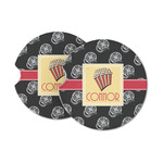 This fun design features a black background with movie reels repeating. On top there is a bright red ribbon with a soft yellow frame. In the frame there is a fun popcorn graphic with your personalization underneath. The yellow and red give the perfect contrast against the dark black. The font even gives you a classic movie feel.