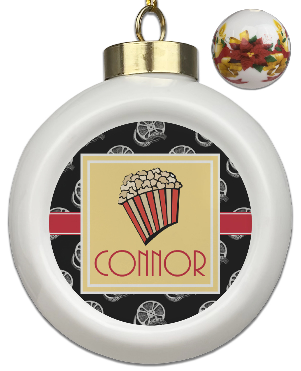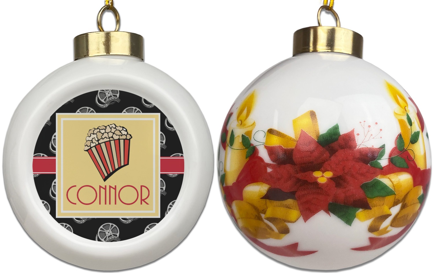 Our Christmas ornaments are a unique ceramic ball shape with a twist as it has a flat face to display your custom design! Select from one of our two design types - Christmas Tree or Poinsettia Garland - to adorn the curved back of your personal design. Each ornament measures 3H x 2.5W x 2D accompanied with a gold string accent for finishing touches to hang on your beautiful Christmas tree!