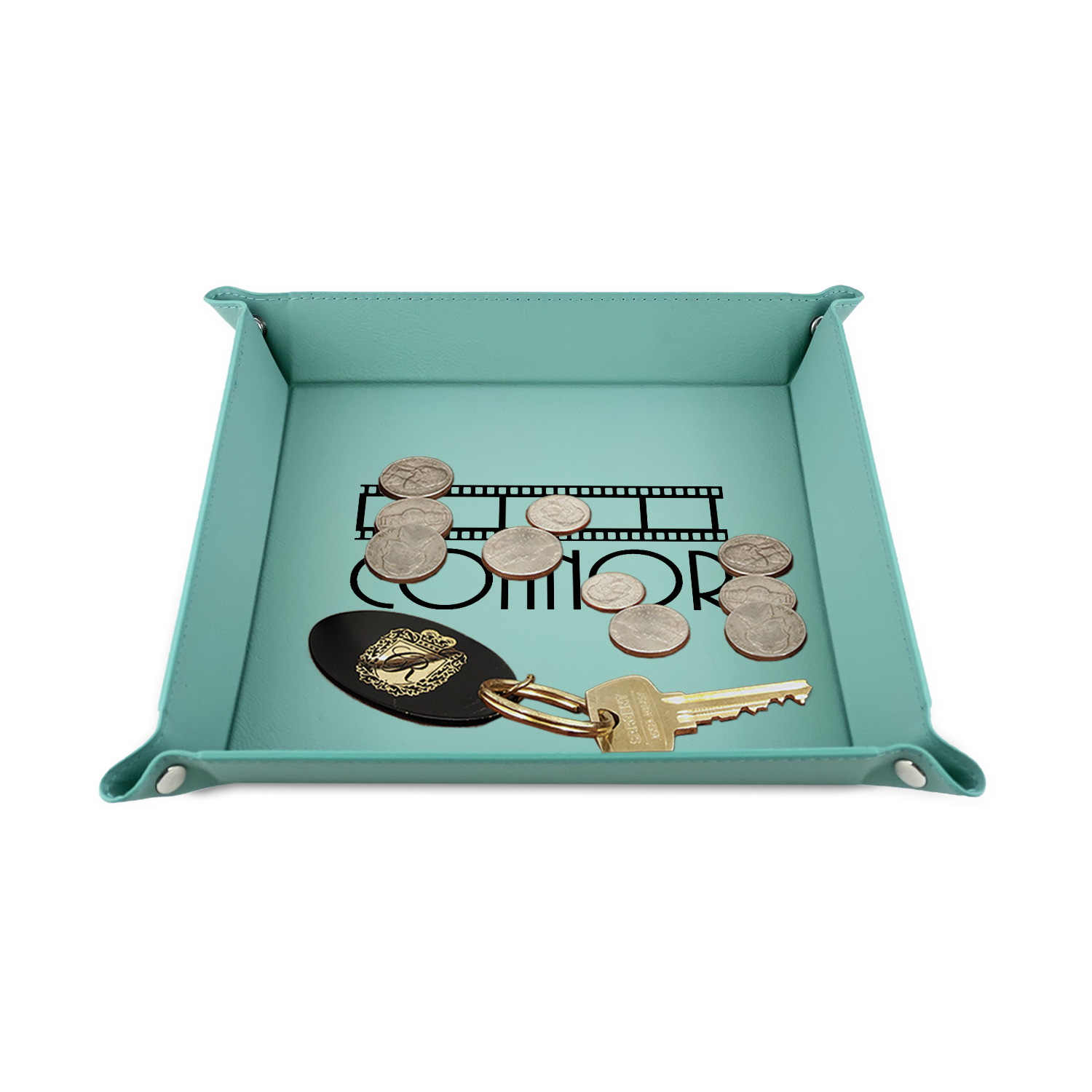 The leatherette wraps the hard board base and sides with flexible hinges to fold the sides up. The corners are secured using silver snaps. The 6in x 6 in tray measures approximately 9.5in x 9.5in when laid flat. The 9in x 9in tray measures approximately 13in x 13in when laid flat.