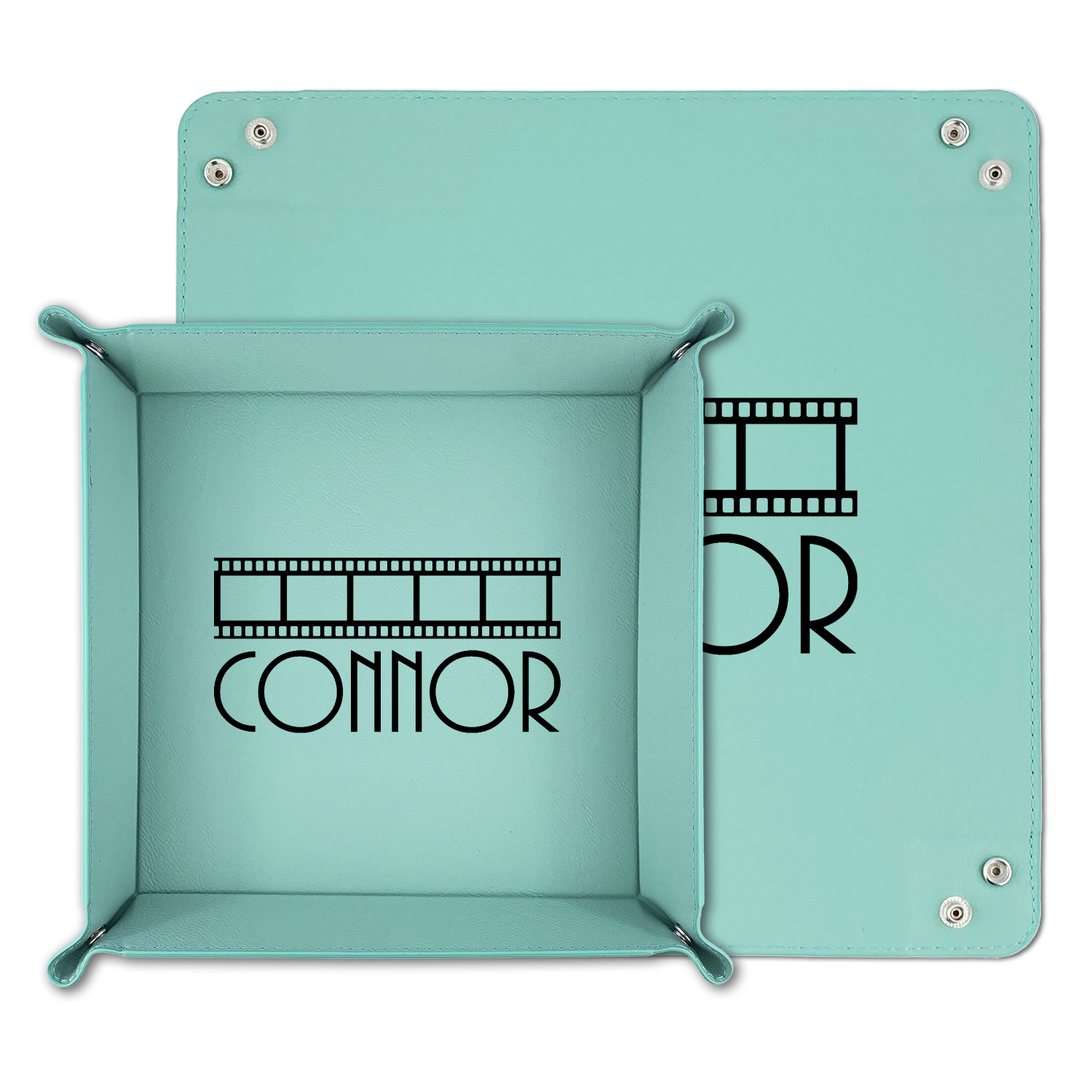 The leatherette wraps the hard board base and sides with flexible hinges to fold the sides up. The corners are secured using silver snaps. The 6in x 6 in tray measures approximately 9.5in x 9.5in when laid flat. The 9in x 9in tray measures approximately 13in x 13in when laid flat.