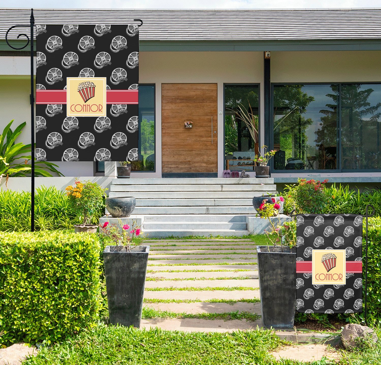 These custom garden flags are made of a durable, double-ply, polyester weave, allowing them to withstand the elements year round. The small flags measure at approximately 12 by 18 inches. The large flags measure out to 28 by 37 inches. You can order these decorative flags with your customization printed on the front only, or the front and back.