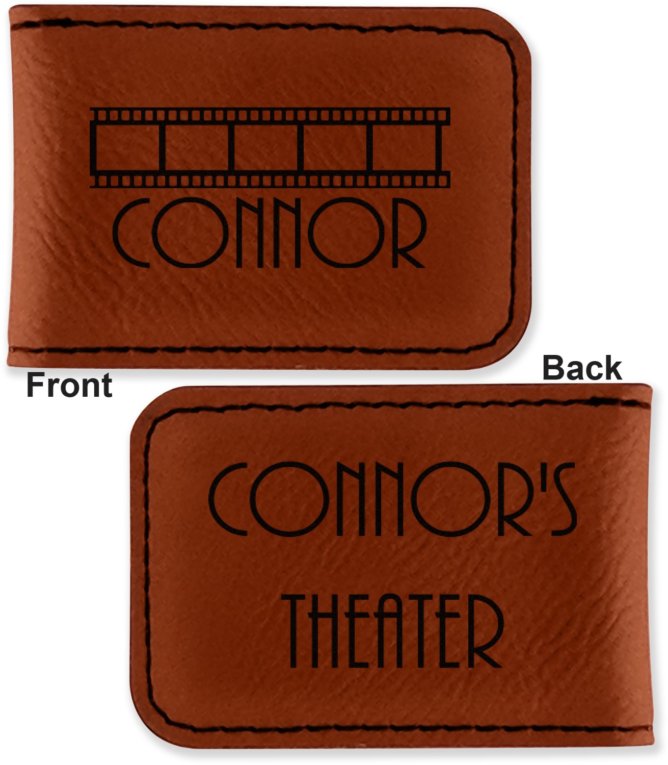 Your money clip will be laser engraved so that the design you choose will come out black. Find a fun graphic, monogram, or font to use to personalize your money clip either on just the front or the front and the back.