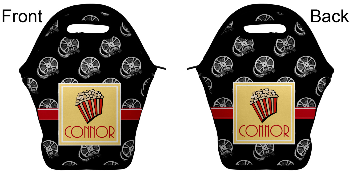 Our personalized lunch bags are made from a strong neoprene, and secure with a zipper closure that lines the top of the bag.The edges of the neoprene are sewn together with a heavy duty stitch, adding to the durability of the bag. The is accompanied by a reinforced handle at its top, for the easy transport of your lunch. We display your personalization across both the front and back of this neoprene lunch bag, while the remaining sides are a sleek black in color. Each bag measures at 13.5 inches tall, and 11.5 inches wide.
