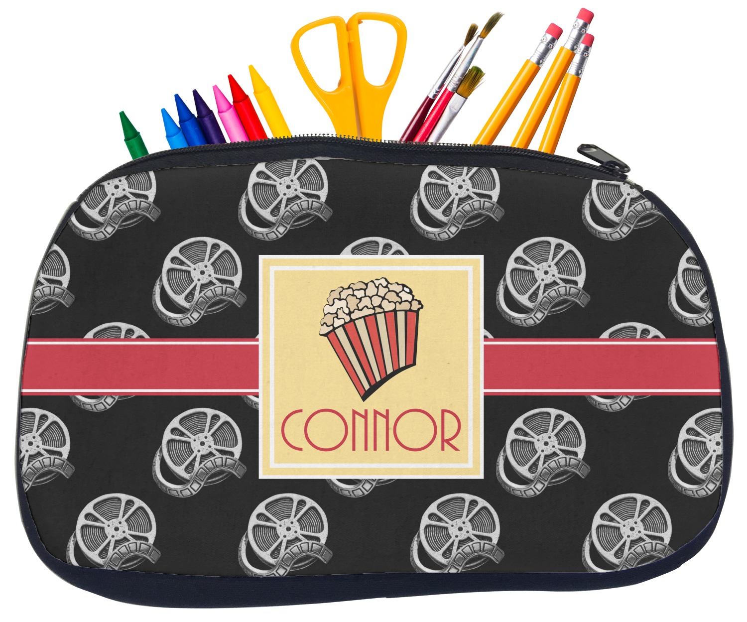 Built from durable neoprene, these pencil pouches, are water resistant, and prevent leaking ink from spilling into your backpack or purse. These custom pencil cases secure with a robust, black zipper. We print your personalized design on the front of this pouch, while the remaining sides a simple black color. These colored pencil cases [880] are sold in two sizes; our smaller version measures at 8.5 by 4.5 inches, while the medium measures at 10.5 by 6.5 inches. The smaller size is more suitable for holding pencils and pens, while our medium size can accommodate pencil sharpeners, scissors, and erasers.