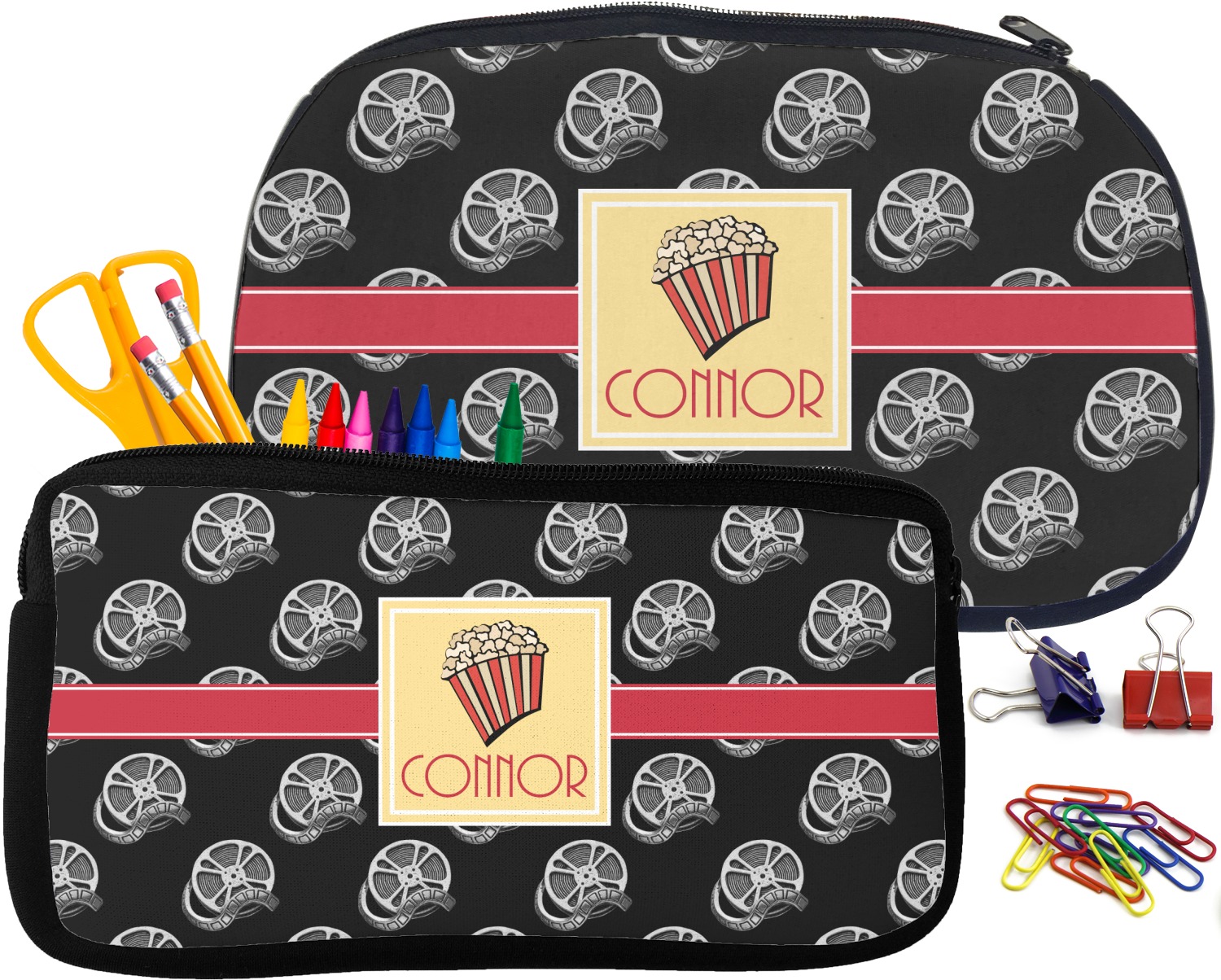 Built from durable neoprene, these pencil pouches, are water resistant, and prevent leaking ink from spilling into your backpack or purse. These custom pencil cases secure with a robust, black zipper. We print your personalized design on the front of this pouch, while the remaining sides a simple black color. These colored pencil cases [880] are sold in two sizes; our smaller version measures at 8.5 by 4.5 inches, while the medium measures at 10.5 by 6.5 inches. The smaller size is more suitable for holding pencils and pens, while our medium size can accommodate pencil sharpeners, scissors, and erasers.