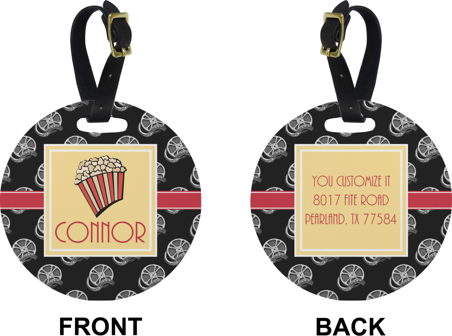 These personalized bag tags are sold in a variety of shapes, so that you may find the product that meets your vision exactly. We sell a round luggage tag, which measures at approximately 4" x 4". Our square luggage tag is about 3.5" x 3.5", while our rectangular version is 2.75" x 4 ".