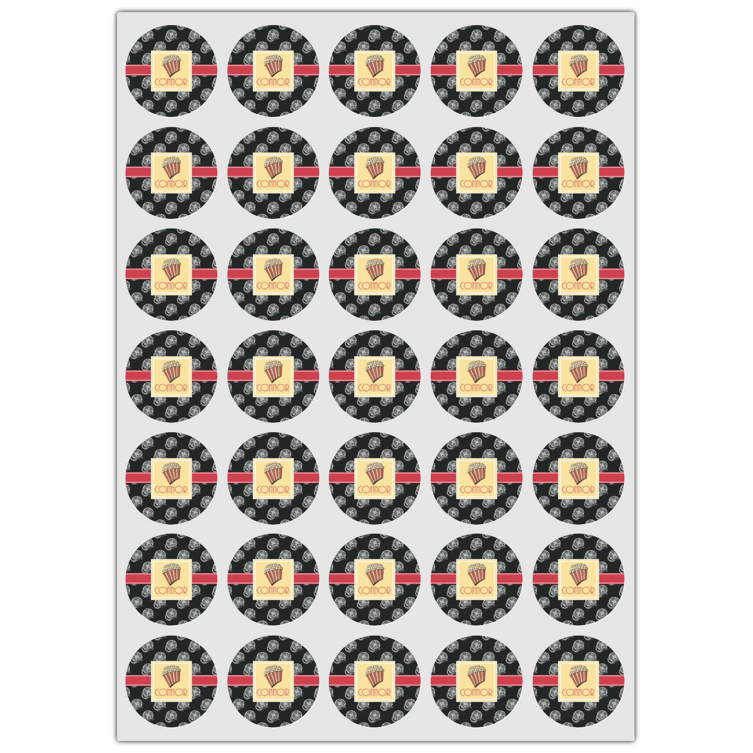 This fun design features a black background with movie reels repeating. On top there is a bright red ribbon with a soft yellow frame. In the frame there is a fun popcorn graphic with your personalization underneath. The yellow and red give the perfect contrast against the dark black. The font even gives you a classic movie feel.