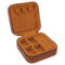 This square zippered travel jewelry box is made from leatherette and is available in four colors - classic cognac / rawhide, a beautiful teal. navy blue or pink. The tan colored soft velvet inside has compartments and hooks for all your jewelry - rings, chains, earrings, bangles etc.