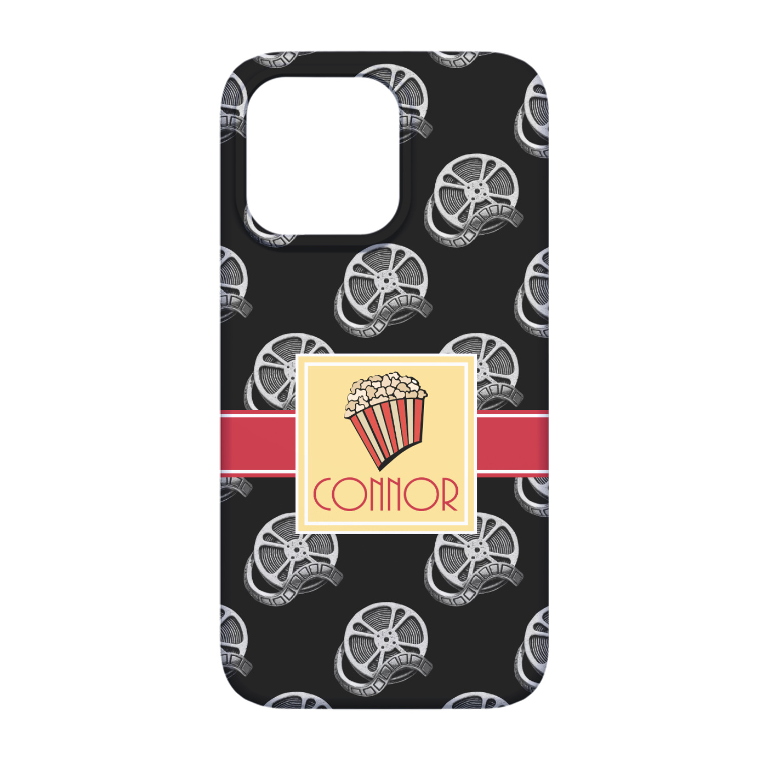 This fun design features a black background with movie reels repeating. On top there is a bright red ribbon with a soft yellow frame. In the frame there is a fun popcorn graphic with your personalization underneath. The yellow and red give the perfect contrast against the dark black. The font even gives you a classic movie feel.