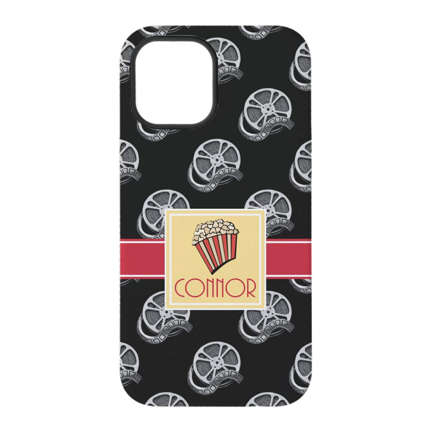 This fun design features a black background with movie reels repeating. On top there is a bright red ribbon with a soft yellow frame. In the frame there is a fun popcorn graphic with your personalization underneath. The yellow and red give the perfect contrast against the dark black. The font even gives you a classic movie feel.
