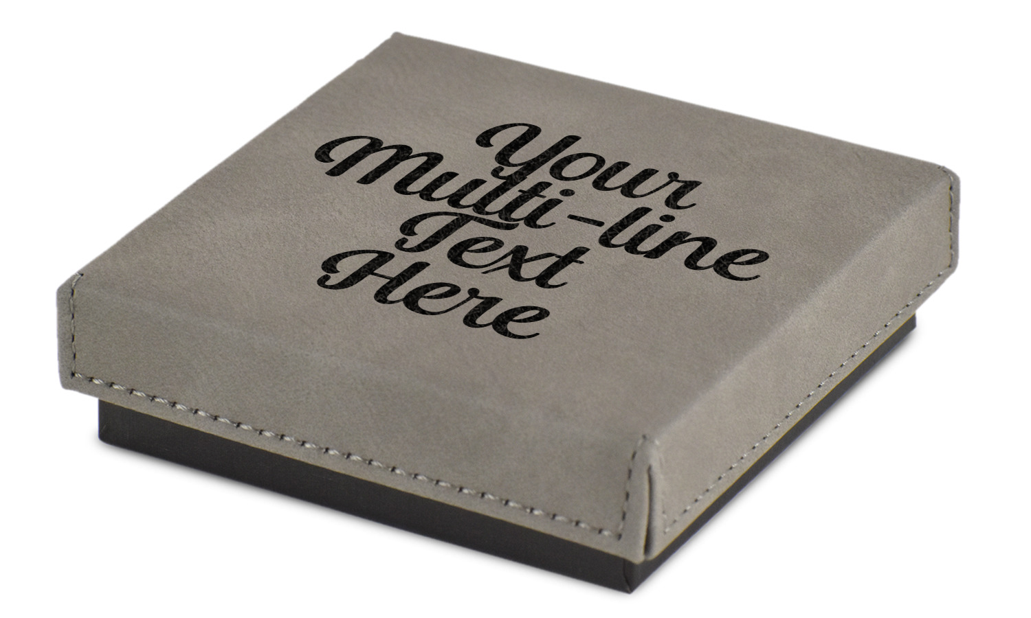This jewelry gift box measures 3.5 inches long by 3.5 inches wide, and 1 inch deep. The box fits different sized jewelry items such as bracelets, necklaces, watches, earrings, rings and more. Engraved with a laser this high quality paper board and faux leather jewelry gift box is unique and makes any gift stand out.