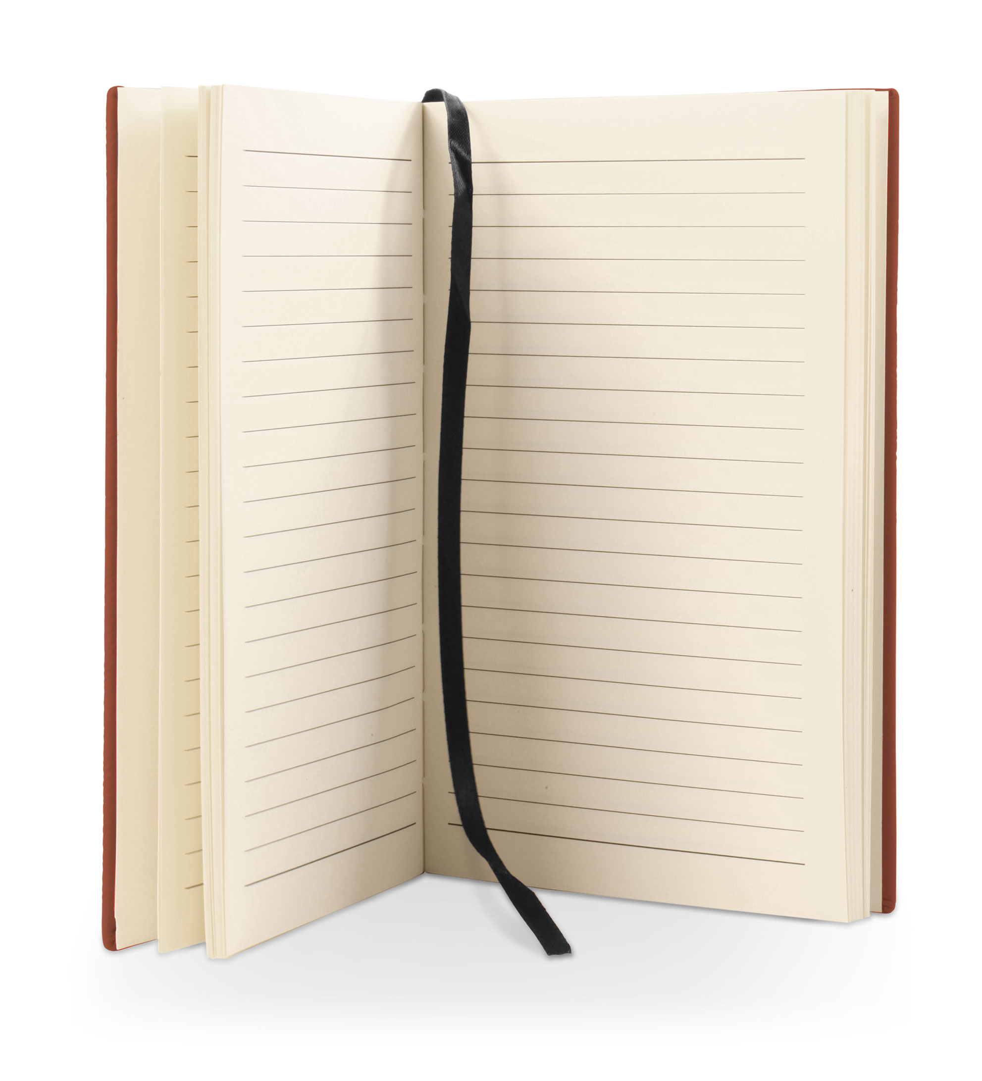 These personalized journals are made from a high quality, cognac brown leatherette that has a rich feel in your hands. The journal notebook features 112 pages of lined paper, and a black, ribbon bookmark to keep your place when closed.
