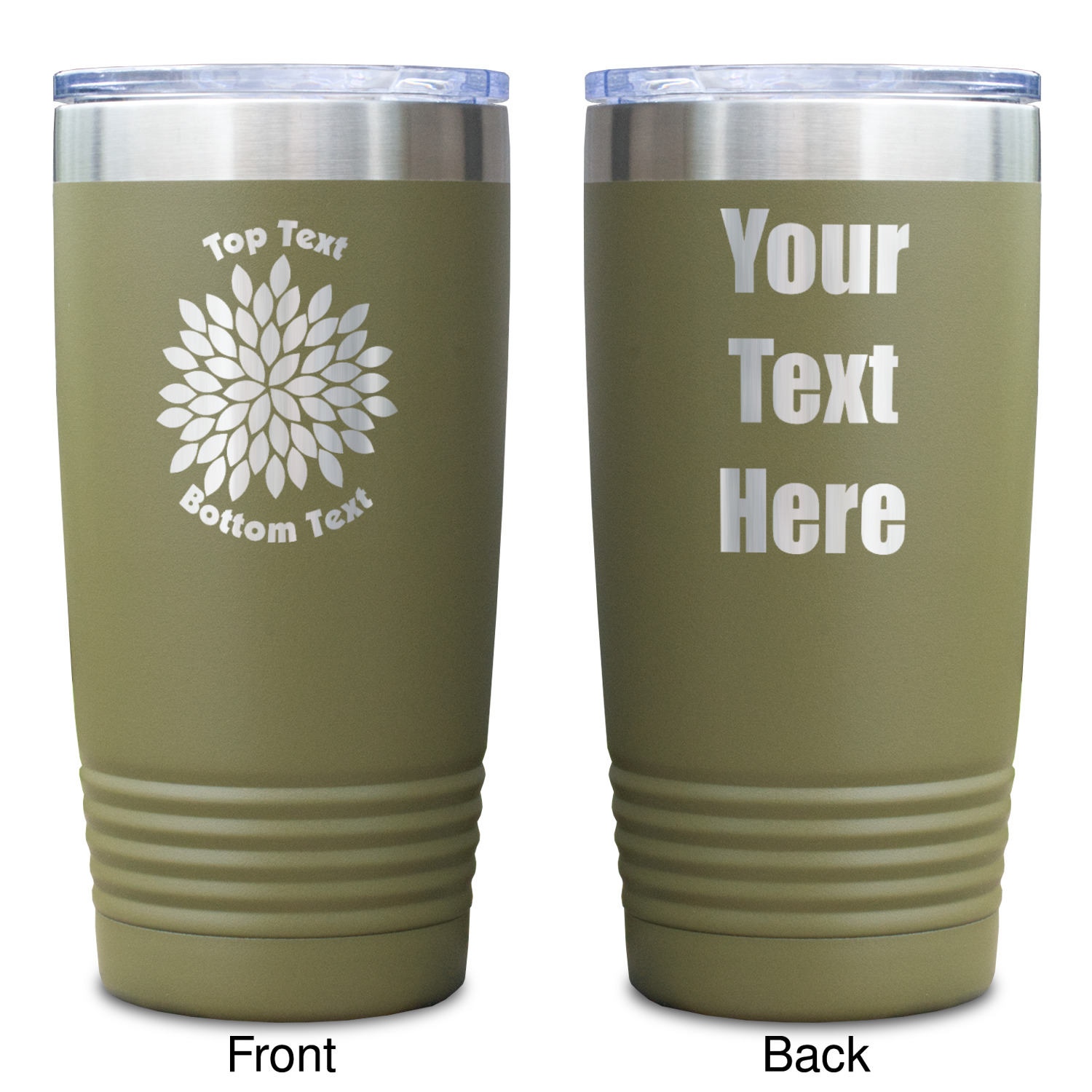 With our personalized 20 oz double wall stainless steel tumblers, you'll never have to settle for a plain, boring tumbler again! These tumblers will be a wonderful addition to your drinkware collection and will make those long commutes much brighter. Personalize one for yourself, or give these personalized tumblers as a gift to relatives, friends, or coworkers!