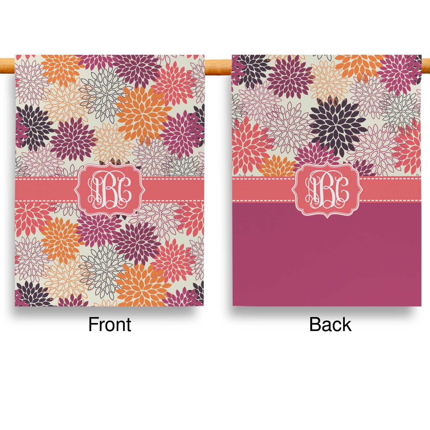 Autumn is in the air. You can feel the cool fall breeze when you see the fall foliage of red, orange, and plum mums on a tan background. The design has a classic ribbon with a decorative label in a beautiful fall color of blood orange. The personalization is an interlocking monogram, but can just as easily be a name, an initial or any text that you would like.