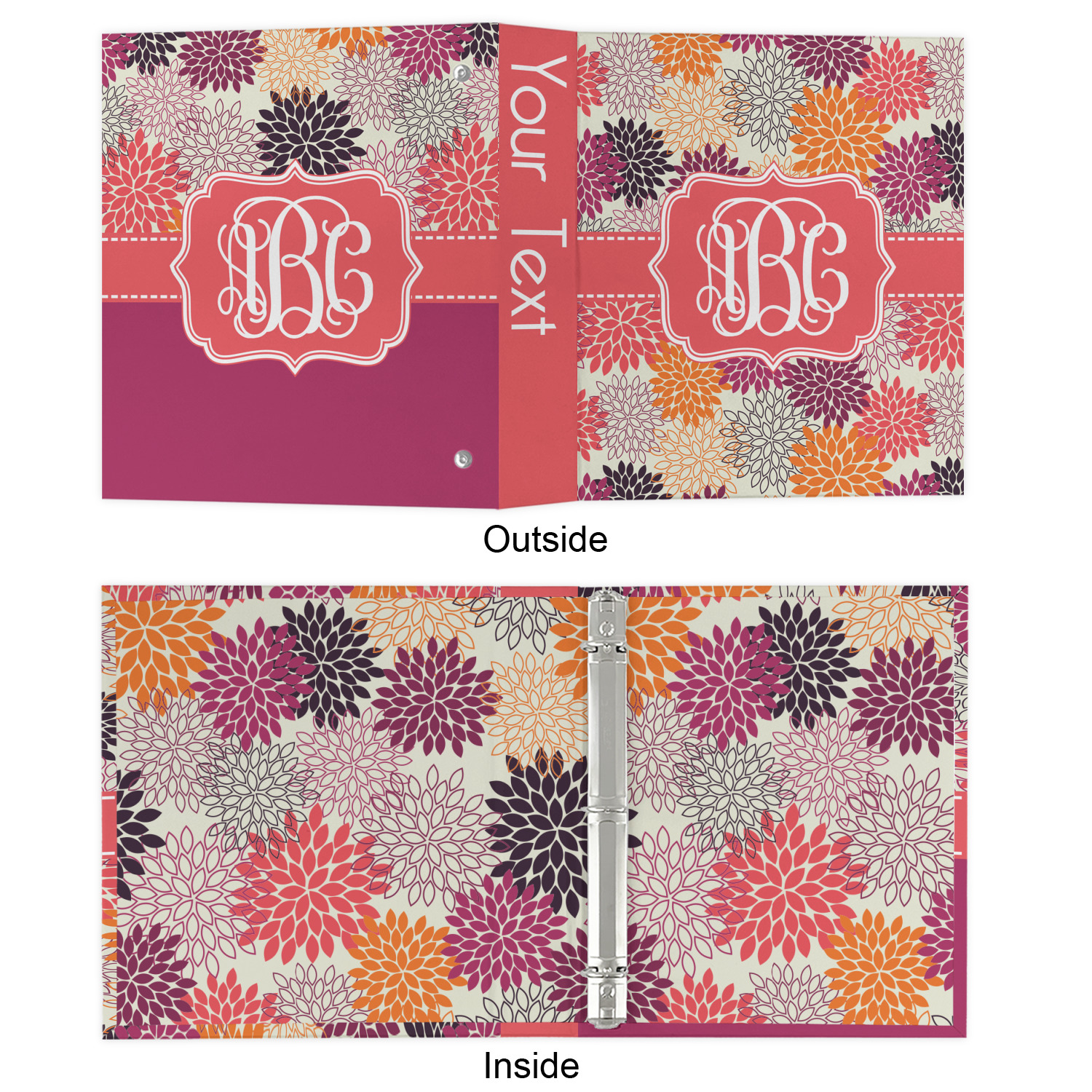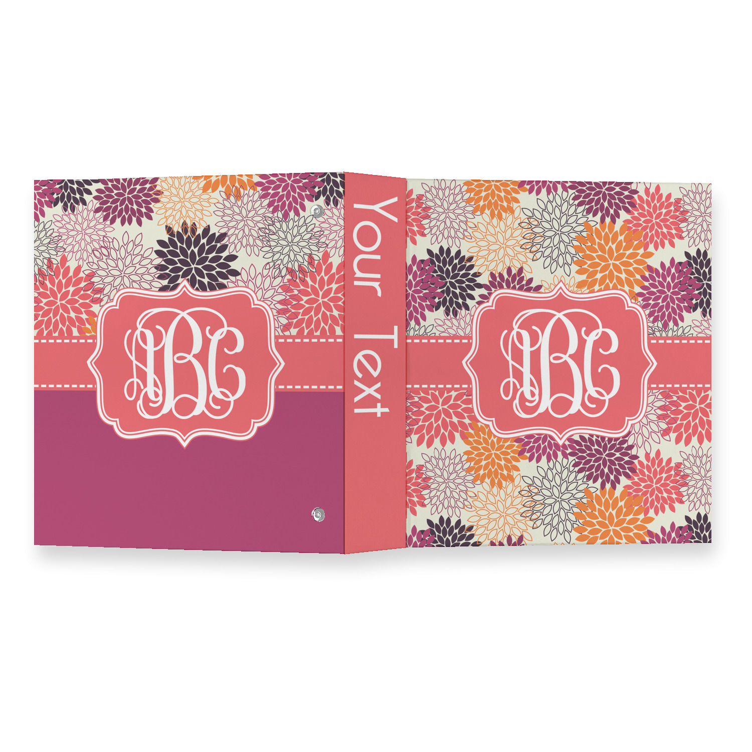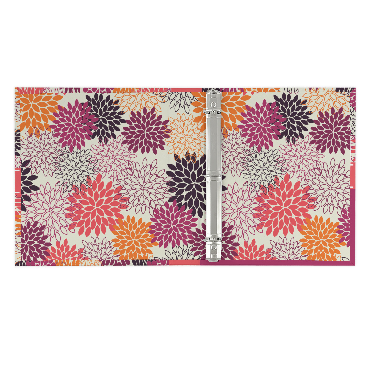 Made from a sturdy cardboard base with a full high quality canvas textured vinyl wrap with the design of your choice. Unlike our standard 3-ring binder with the full wrap design your artwork wraps from the front and back and into the inside of the binder.