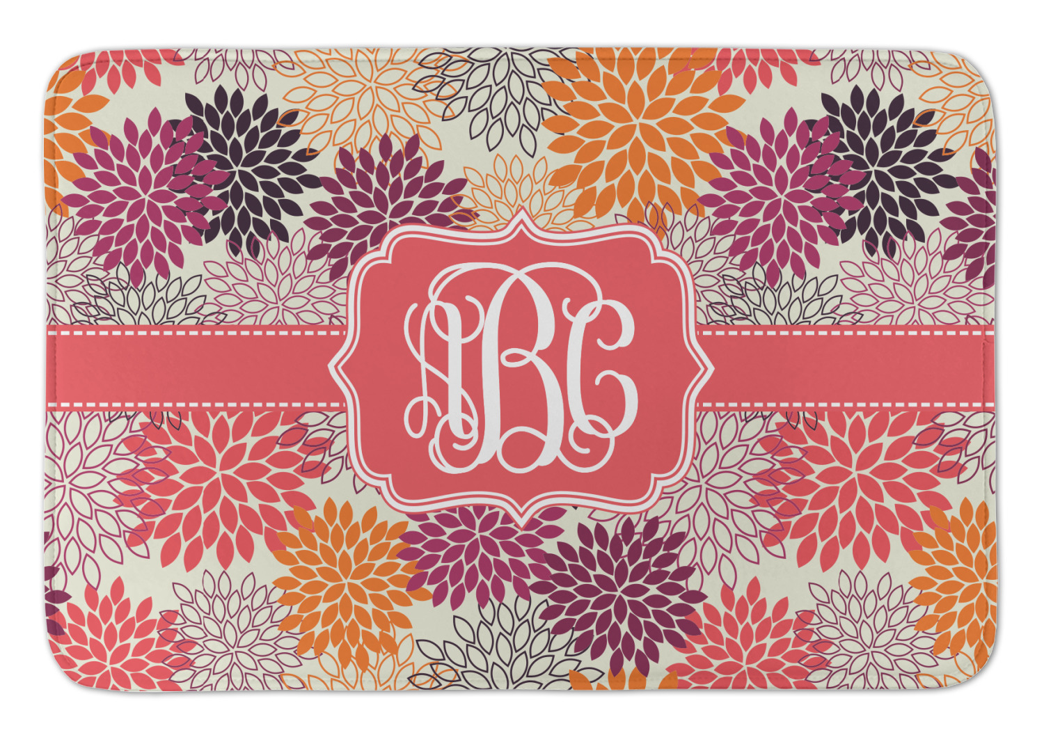 Autumn is in the air. You can feel the cool fall breeze when you see the fall foliage of red, orange, and plum mums on a tan background. The design has a classic ribbon with a decorative label in a beautiful fall color of blood orange. The personalization is an interlocking monogram, but can just as easily be a name, an initial or any text that you would like.