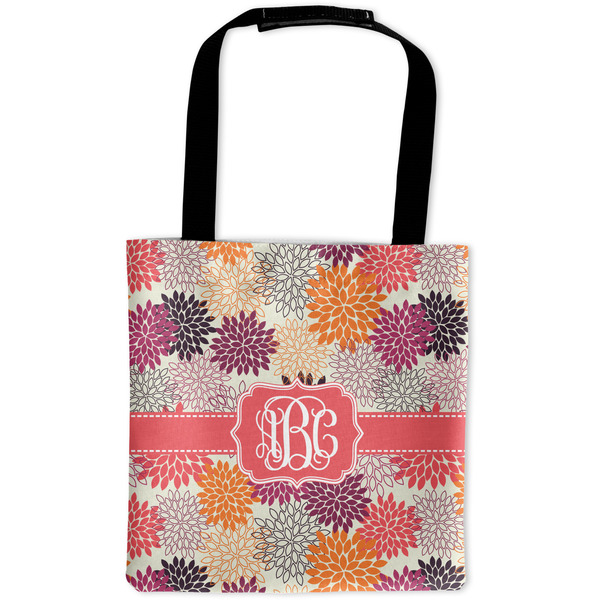 Autumn is in the air. You can feel the cool fall breeze when you see the fall foliage of red, orange, and plum mums on a tan background. The design has a classic ribbon with a decorative label in a beautiful fall color of blood orange. The personalization is an interlocking monogram, but can just as easily be a name, an initial or any text that you would like.